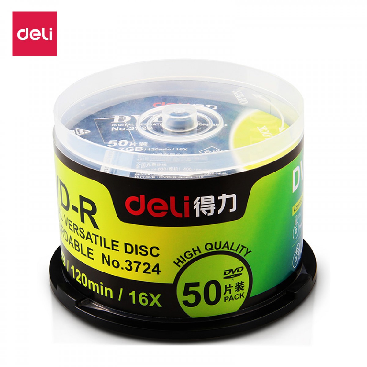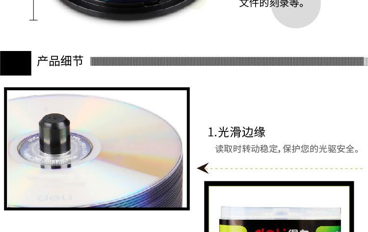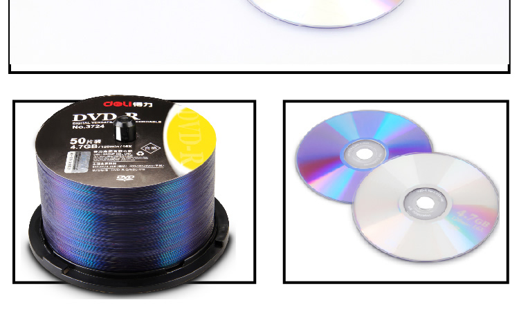 得力3724可记录式DVD光盘 采用原料 银反射层50片装储存数据
