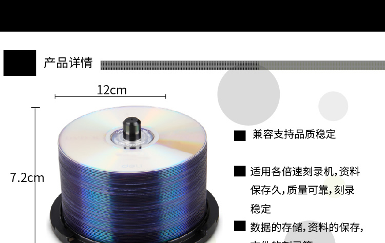 商品名称:得力3724可记录式DVD光盘 采用原料 银反射层50片装储存数据