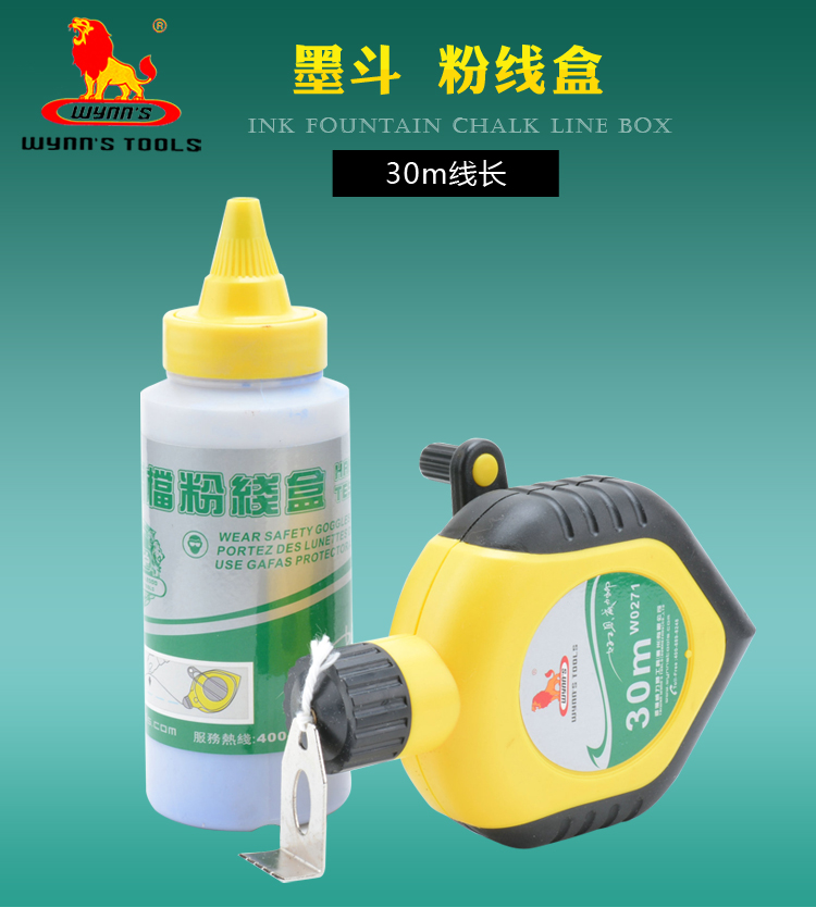 商品名称:Wynn's/威力狮 粉线盒 粉斗 木工粉线盒 30m线墨斗 打墨器 W0271