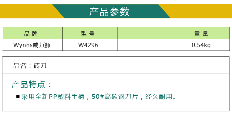 商品名称:Wynn's/威力狮 双面砖刀 双面瓦刀 砌刀 砌砖刀 瓦工工具泥刀 W4296