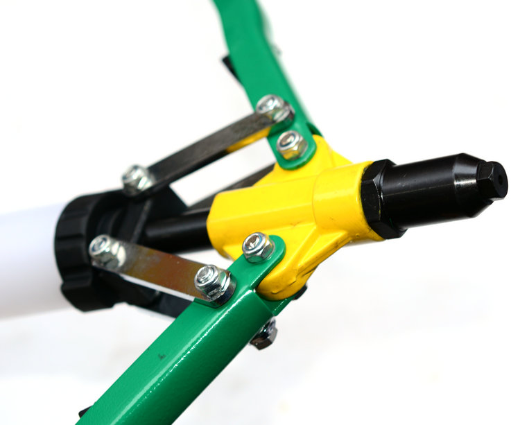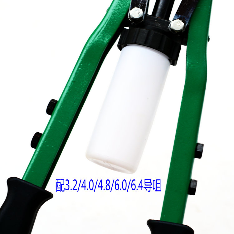 威力狮欧式双把铆钉枪型号:W206A规格:430mm产品特点:★高强度合金钢铆牙,硬度高★可拉铆不锈钢铆钉★主要用于金属,纤维,皮革,塑料等材料的连接和紧固★产品配有5种不同规格导咀替换头,方便使用★手柄内侧配有专业装卸铆嘴扳手