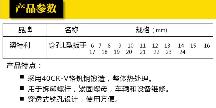 商品名称:Aotl/澳特利 L型套筒扳手 6-24mm套筒扳手 双头套筒扳手 弯头扳手