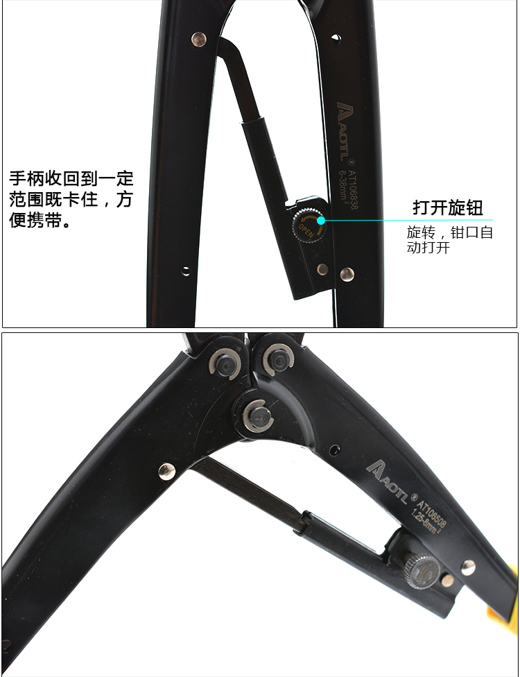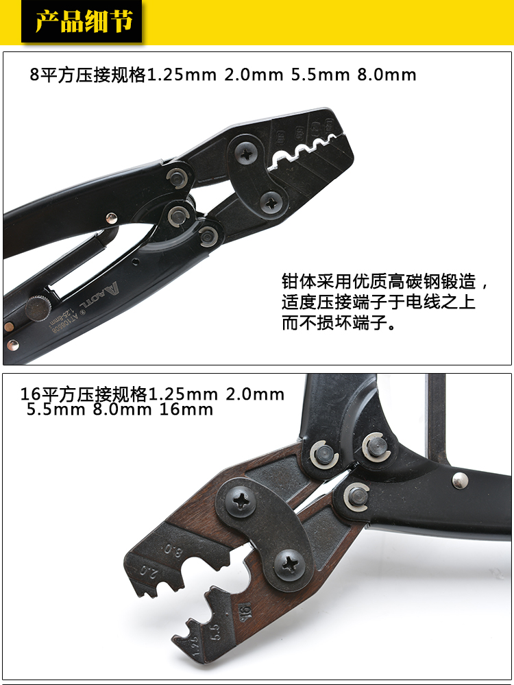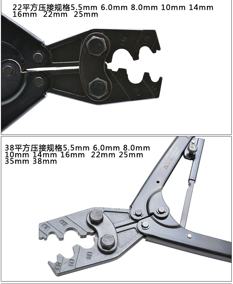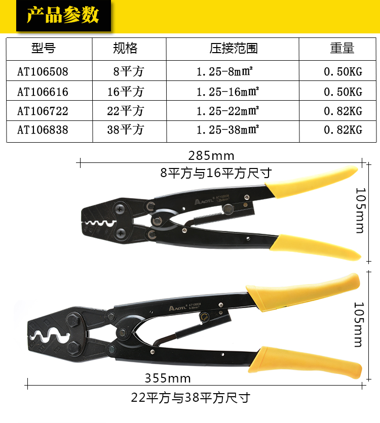 商品名称:Aotl/澳特利 棘轮端子压接钳 8/16/22/38平方压线钳冷压钳端子钳