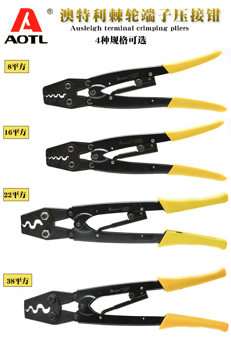Aotl/澳特利 棘轮端子压接钳 8/16/22/38平方压线钳冷压钳端子钳