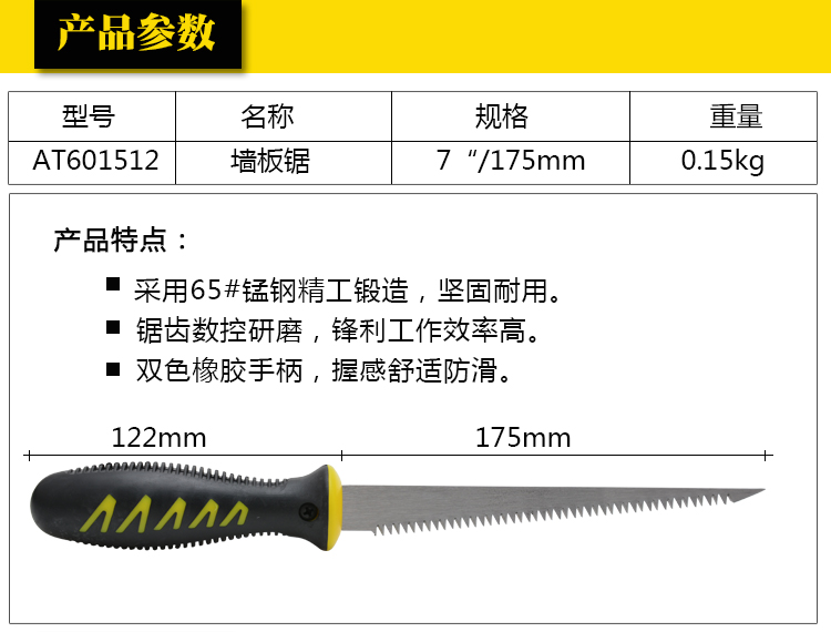 商品名称:Aotl/澳特利 墙板锯 鸡尾锯 手锯 开孔锯 手工锯 园艺锯 AT601512