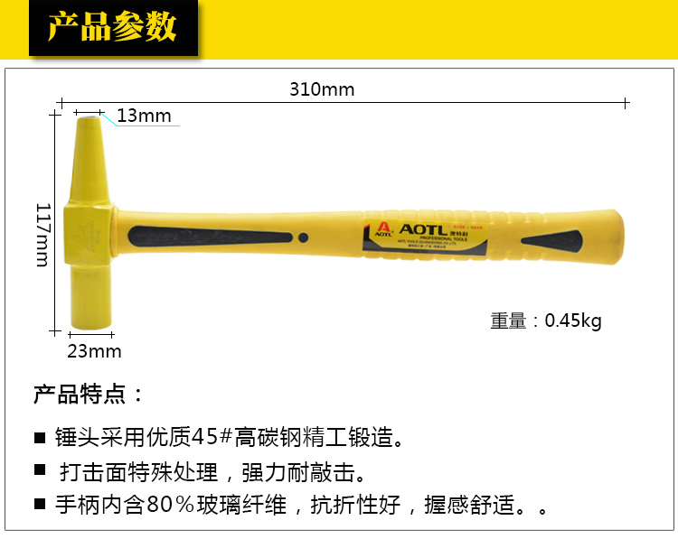 商品名称:Aotl/澳特利 带磁电工锤 电工安装锤 玻璃纤维电工锤 AT0645001