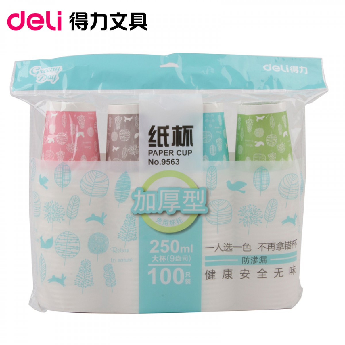 商品名称:得力 9563加厚纸杯 100只装 一次性纸杯 不易变形 250ml
