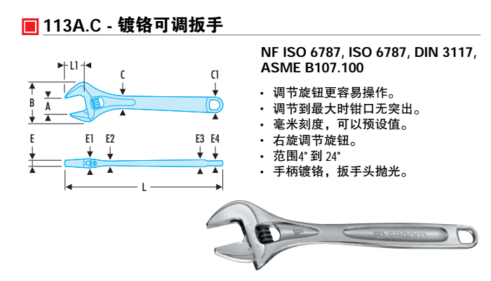 商品名称:FACOM 可调扳手 113A.4C 113A.8C 113A.10C 113A.12C