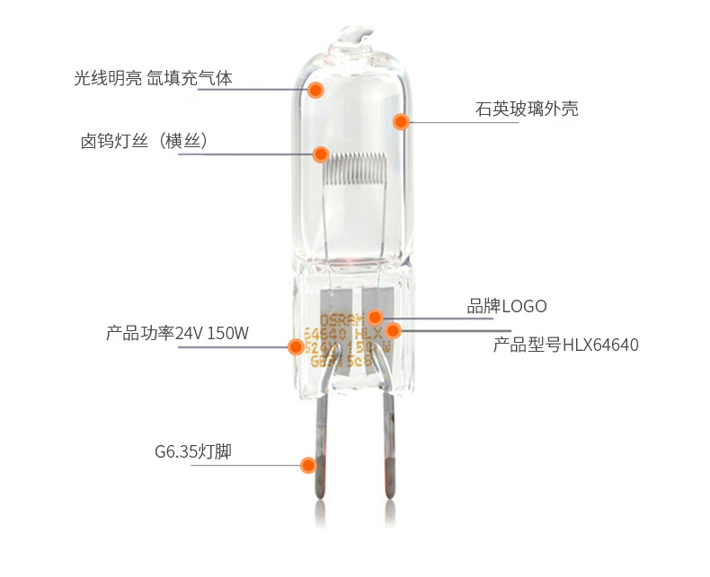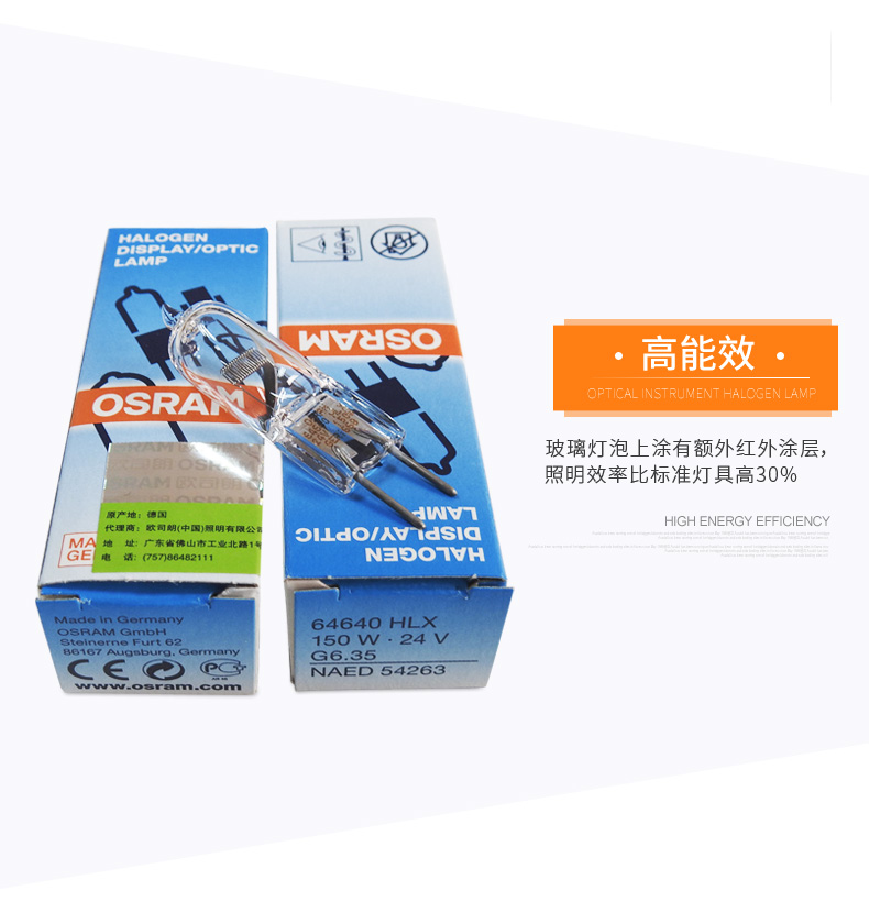 商品名称:欧司朗 卤素灯泡HLX64640 24V150W手术无影灯灯泡显微镜灯泡