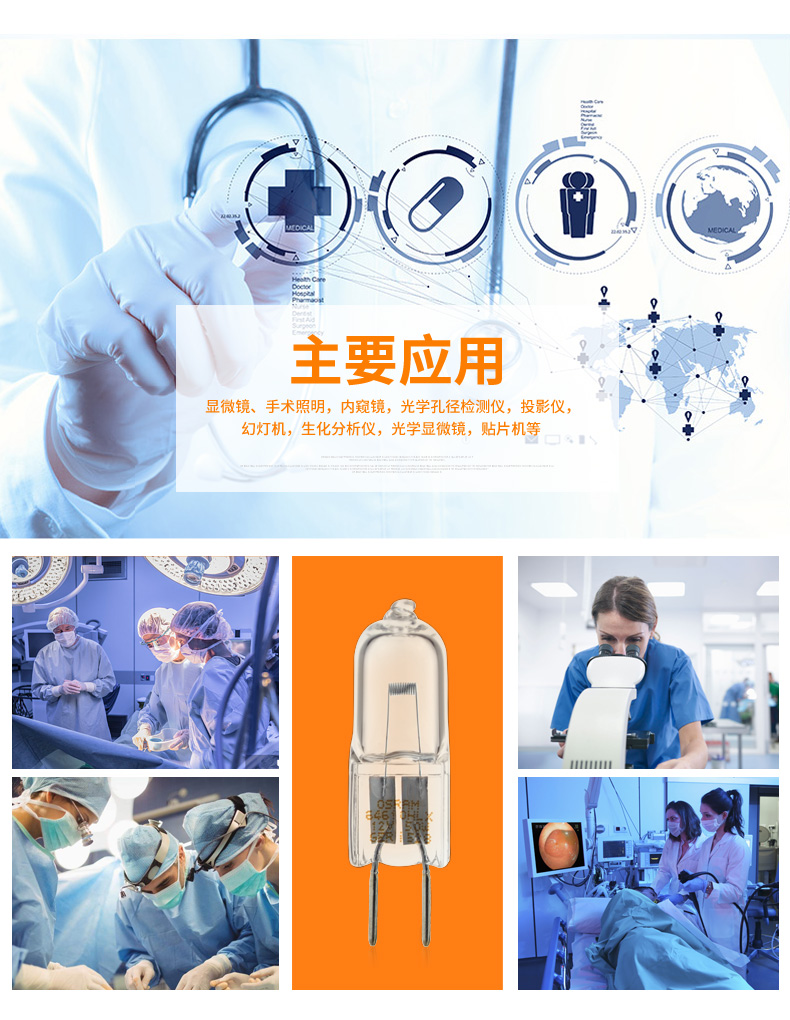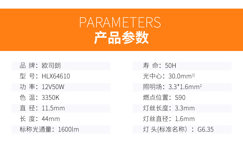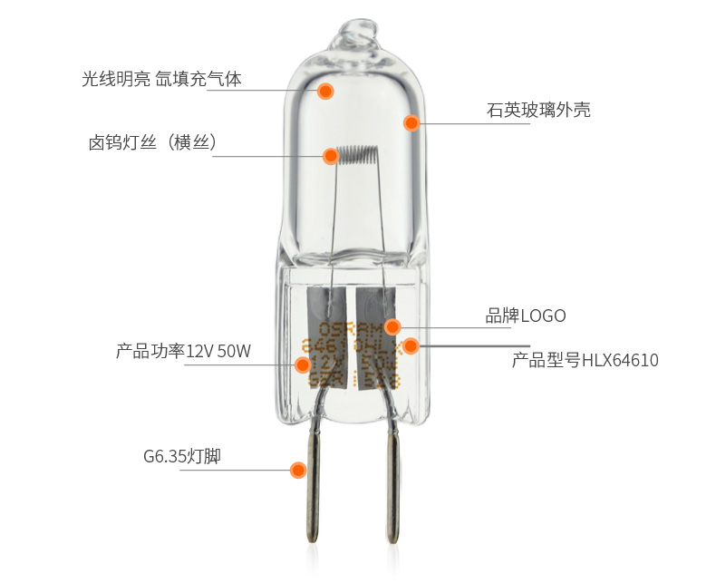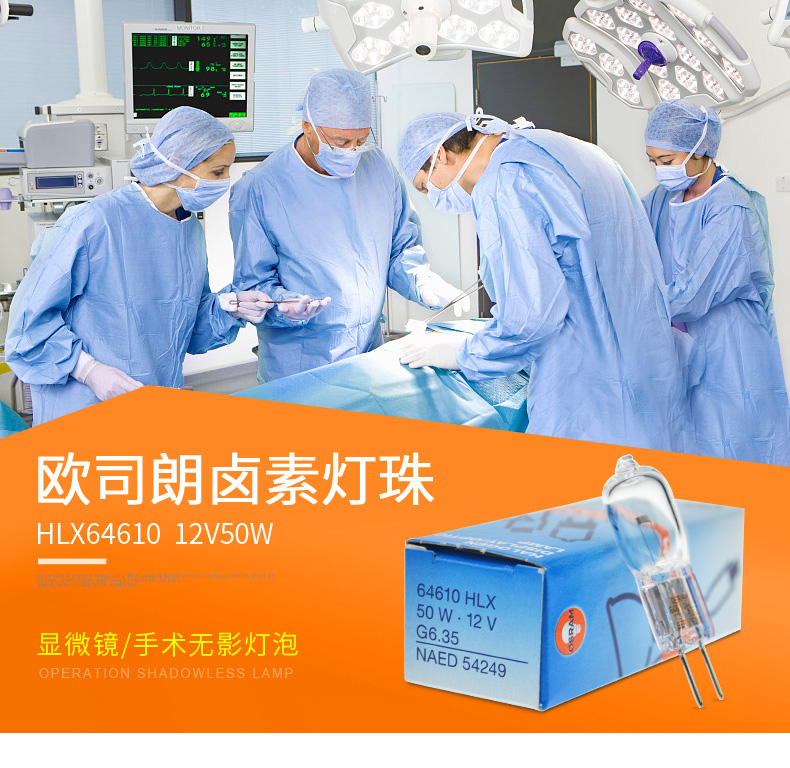 商品名称:欧司朗 卤素灯HLX 64610 12V 50W光学仪器灯泡裂隙显微镜灯泡64611