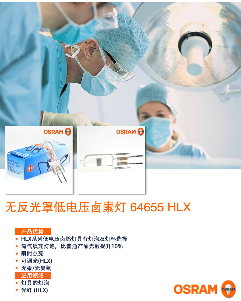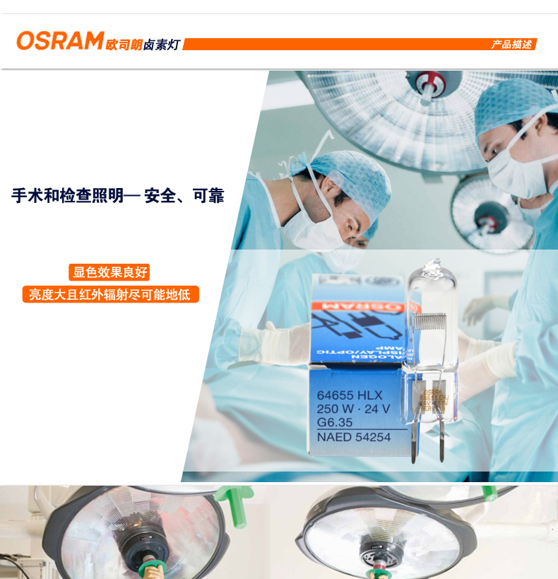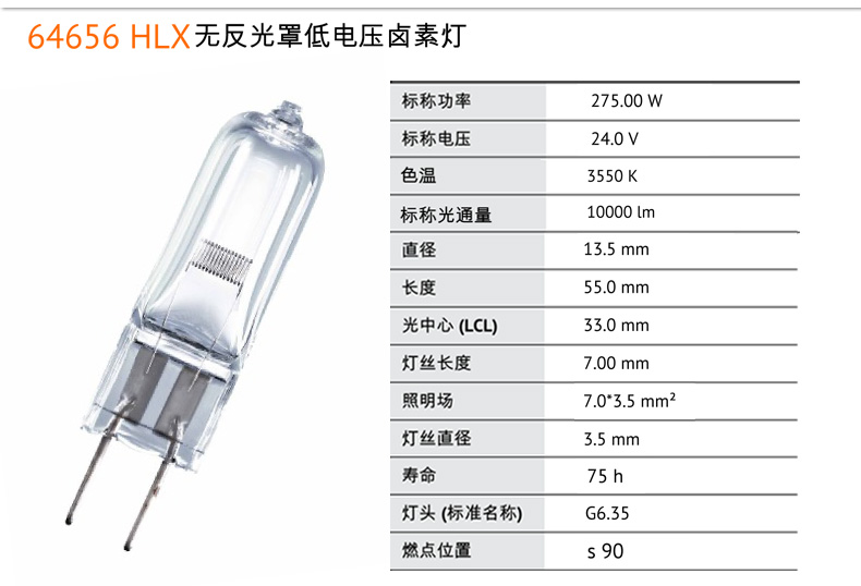 商品名称:欧司朗 卤素灯HLX64655 64656 24V250W 275W手术无影灯显微镜米泡