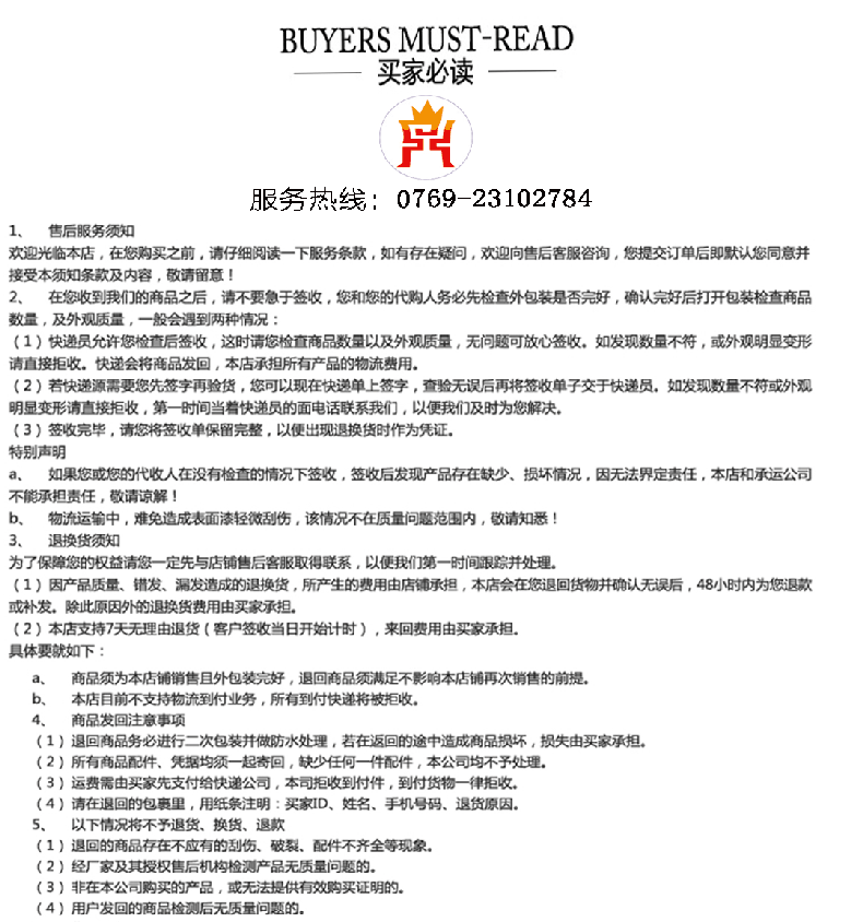 ·不支持退换货服务