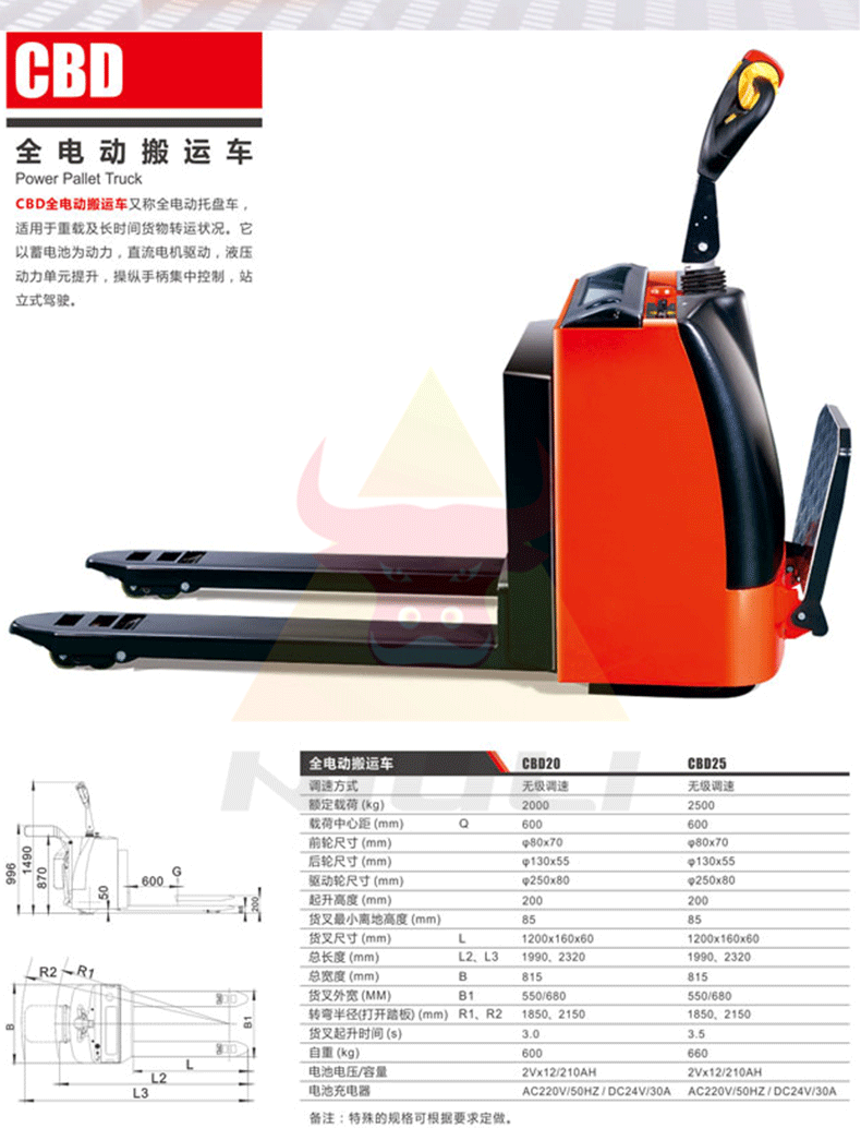 商品名称:牛力 供应电动搬运车电动叉车电动升高车全电动叉车2吨680*1200