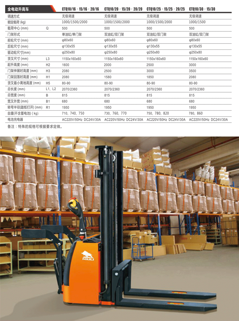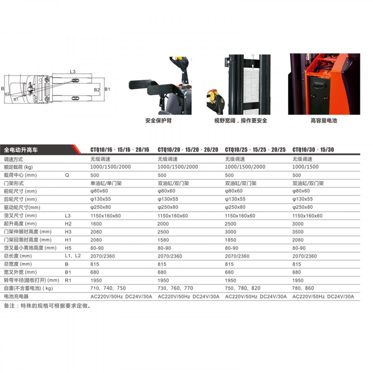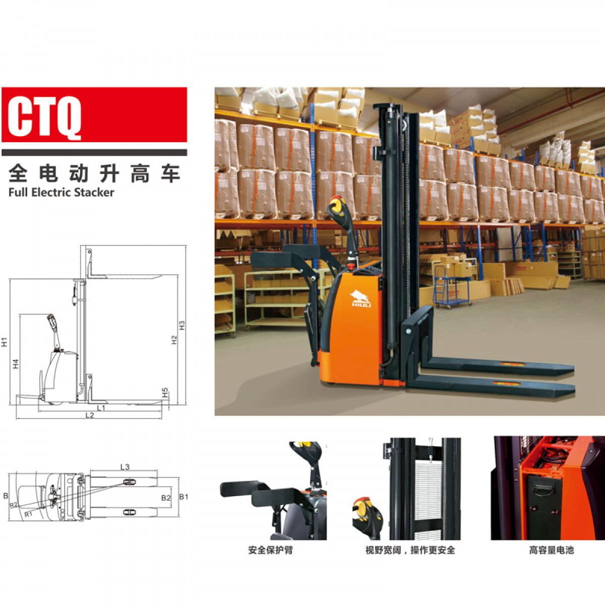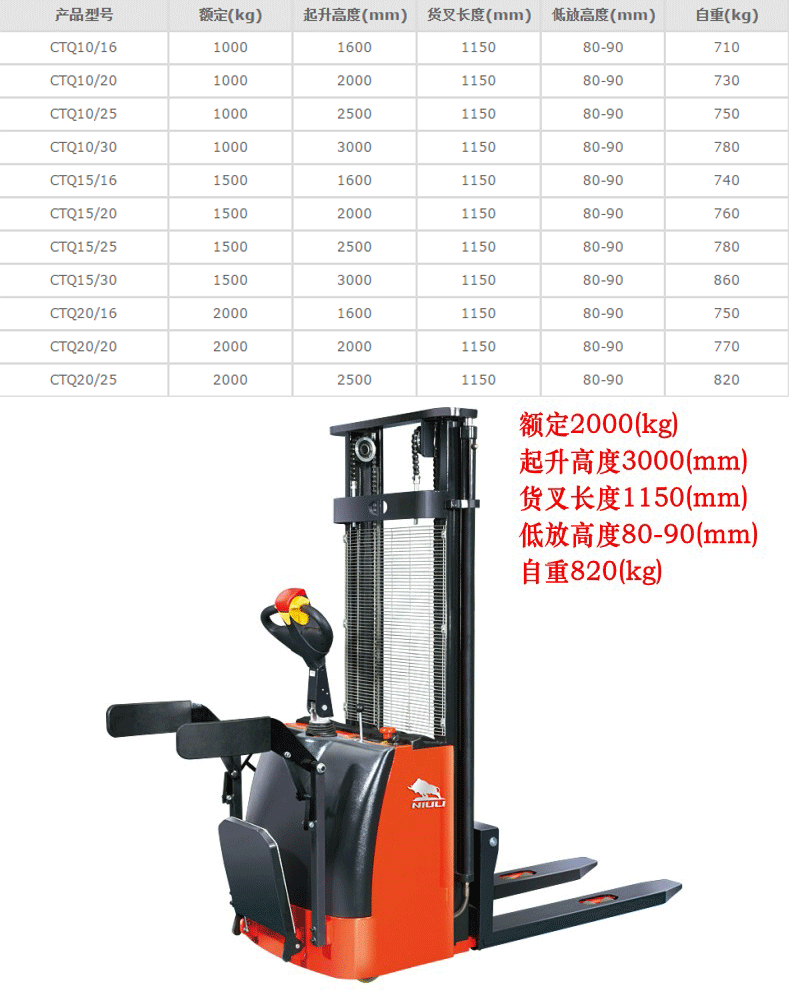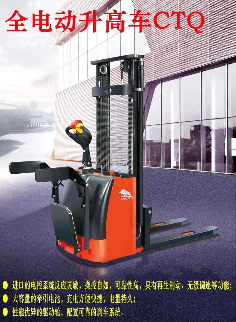 商品名称:牛力 全电动叉车搬运车电瓶站驾式电动堆高液压升高车装卸铲车1吨1.6米 CTQ-N10/15/20