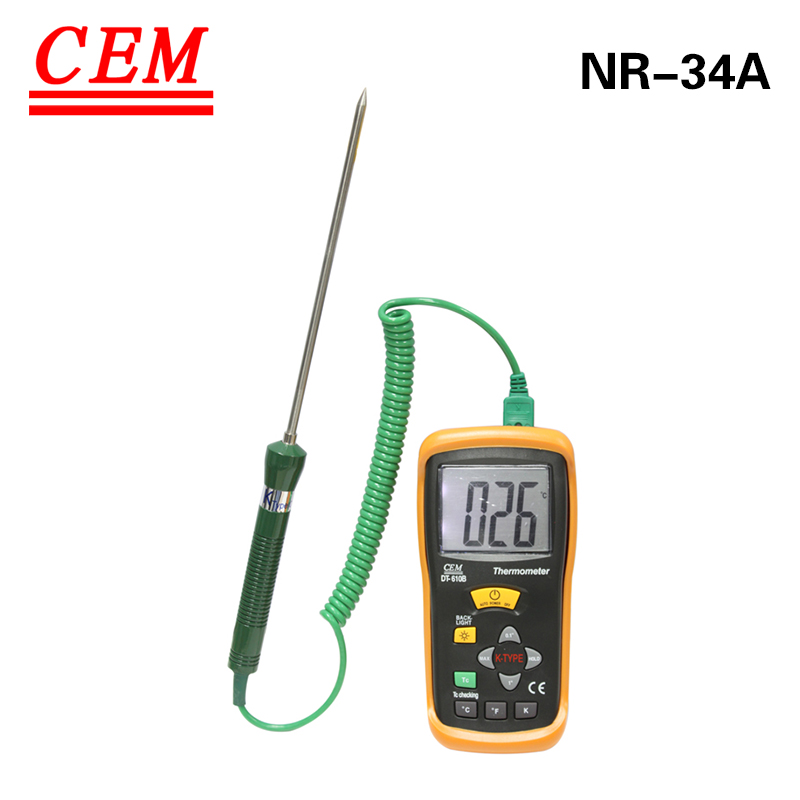 NR-34A K型热电偶温度探头可适配于DT-610BDT-612DT-613等测温仪,直接接触物体,测量物体温度,测量数据比红外测温要准确。(红外测温只是通过红外传感器激光测温,非接触的。)对温度精确度要求比较高的客户可以选择K型热电偶温度探头直接接触物体进行测温。