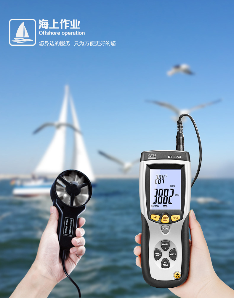 华盛昌 手持式数字风速仪风速风量风温测试仪 DT-8893