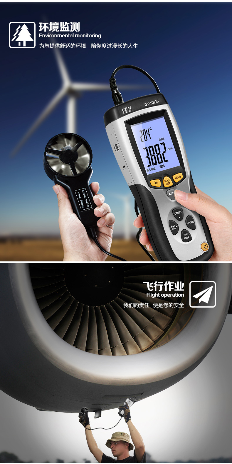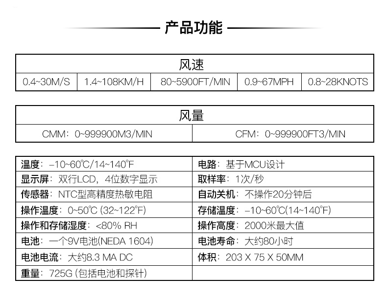 商品名称:华盛昌 手持式数字风速仪风速风量风温测试仪 DT-8893