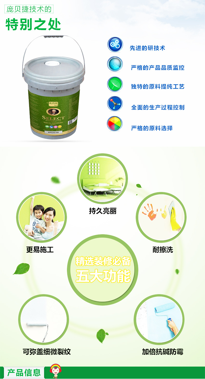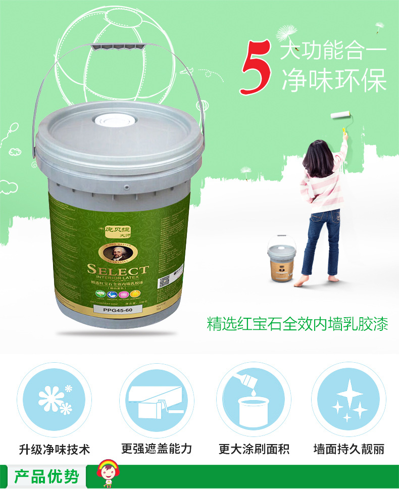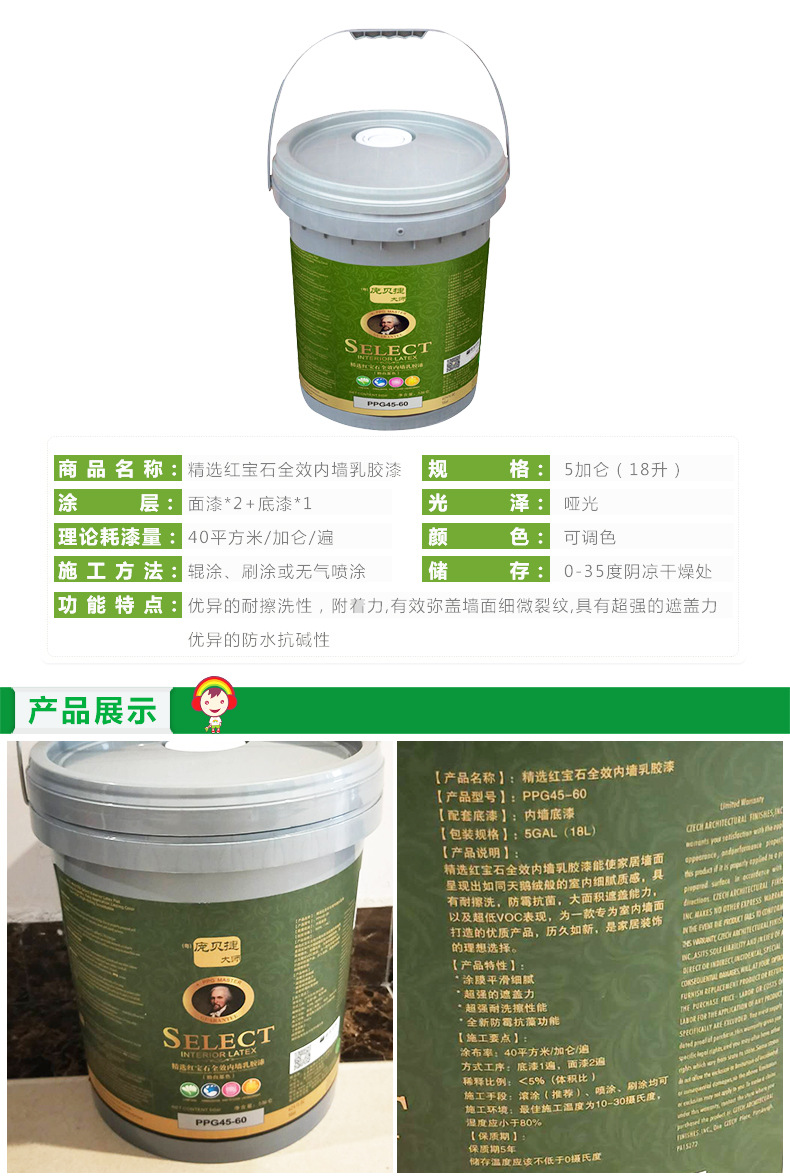 商品名称:庞贝捷 大师漆精选红宝石全效厂家装修环保内墙涂料油漆耐洗擦性 ppg45-60