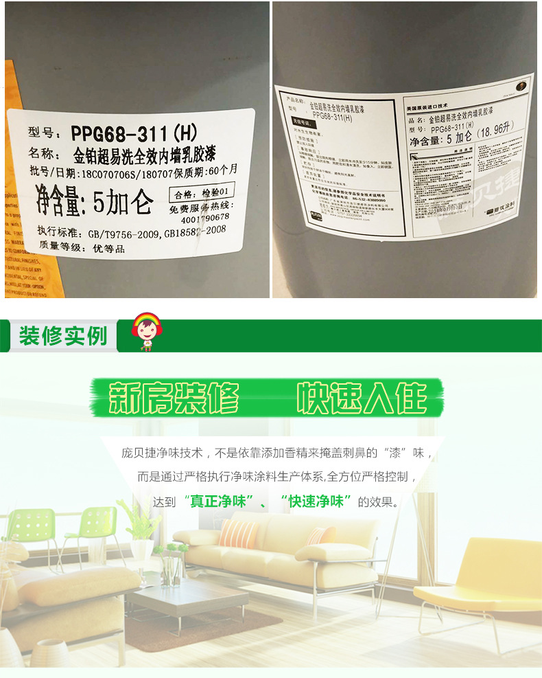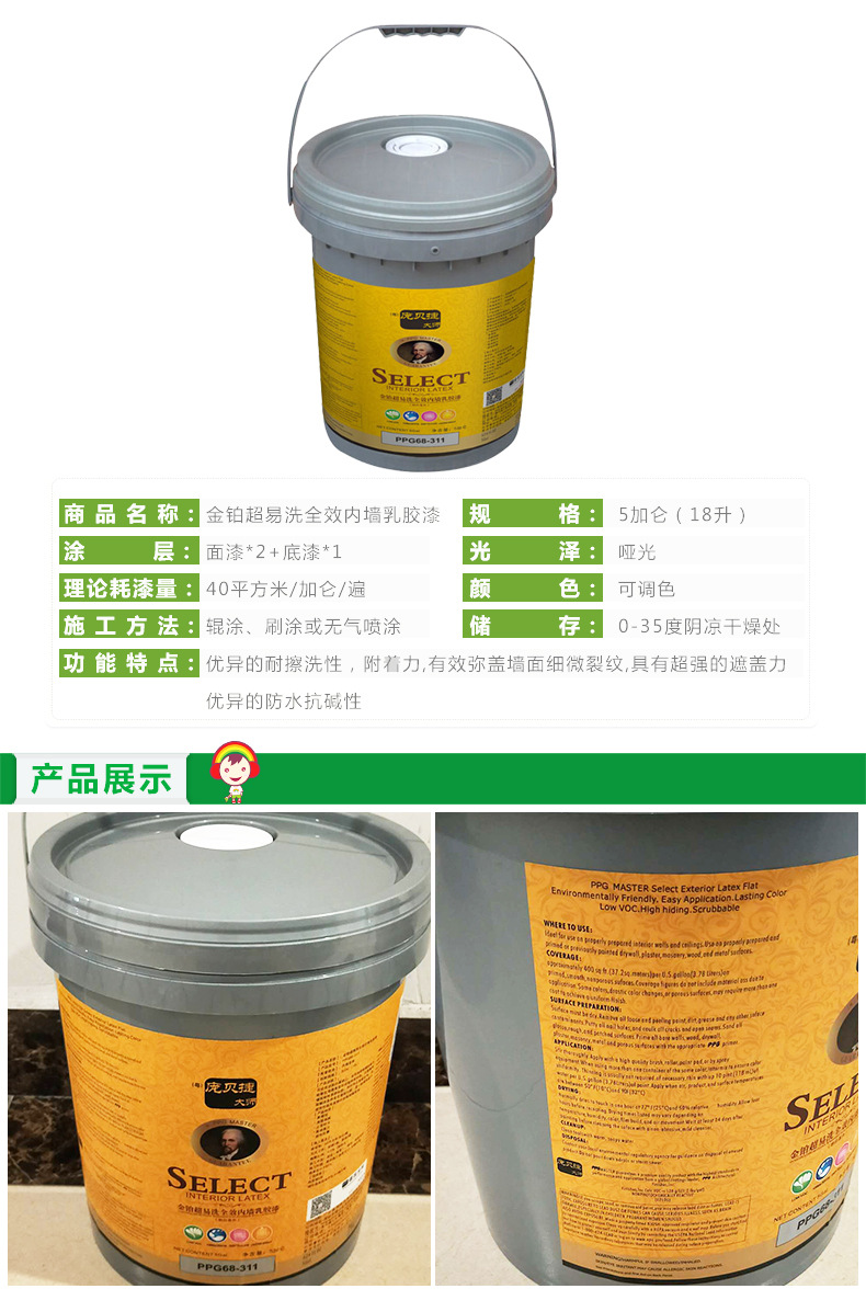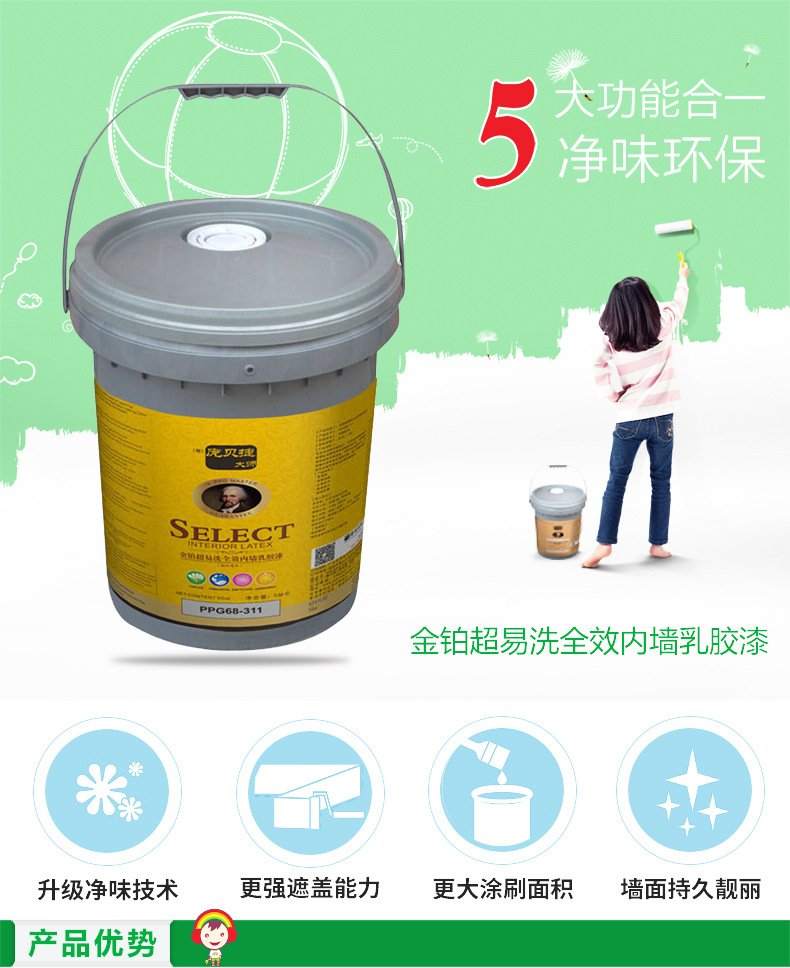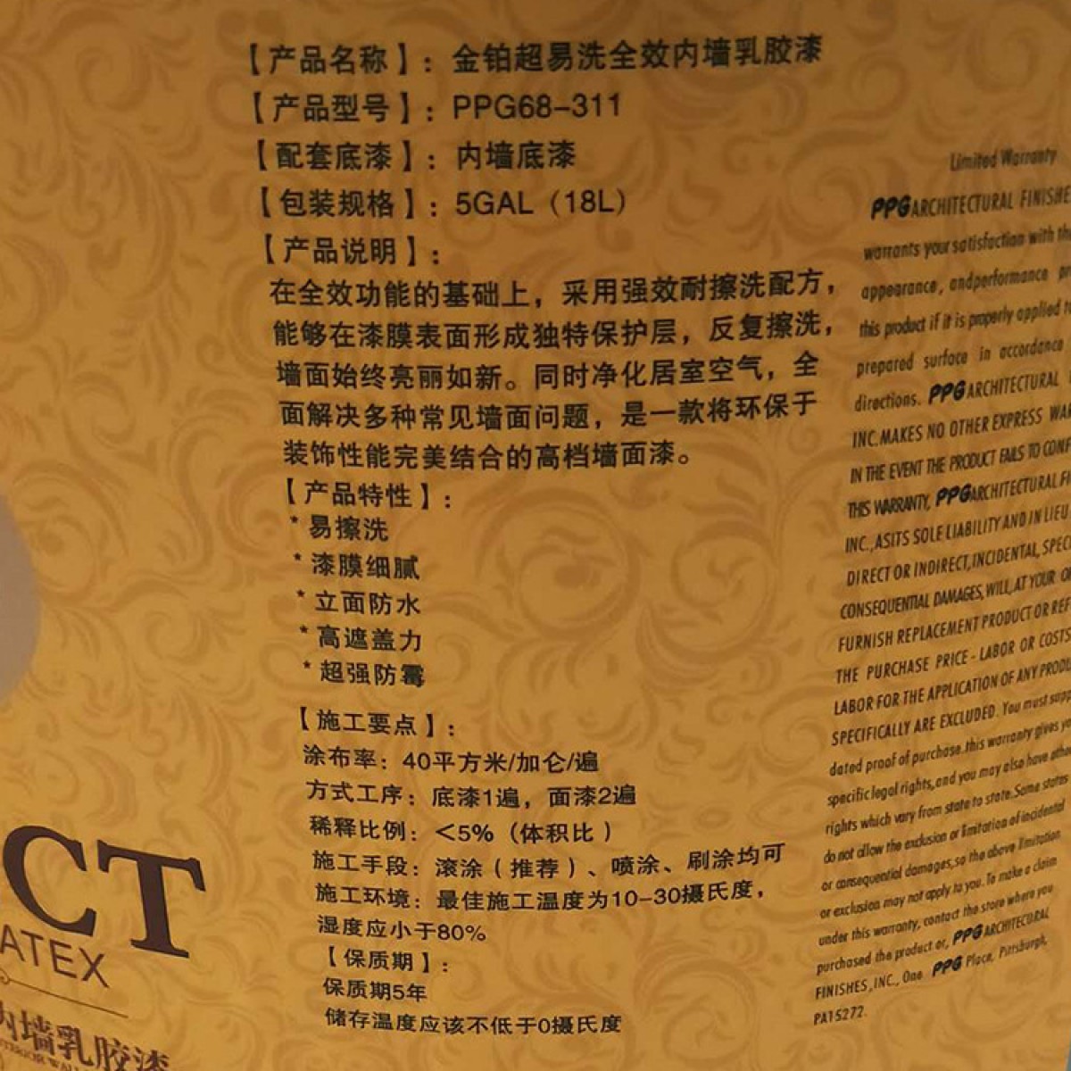 商品名称:庞贝捷 大师漆金铂超易洗全效内墙乳胶漆耐擦洗性内墙乳胶漆施工 PPG68-311