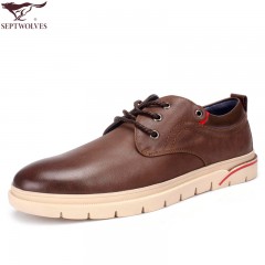 七匹狼 皮鞋新款复古特色头层牛皮男士真皮日常休闲软皮男鞋子
