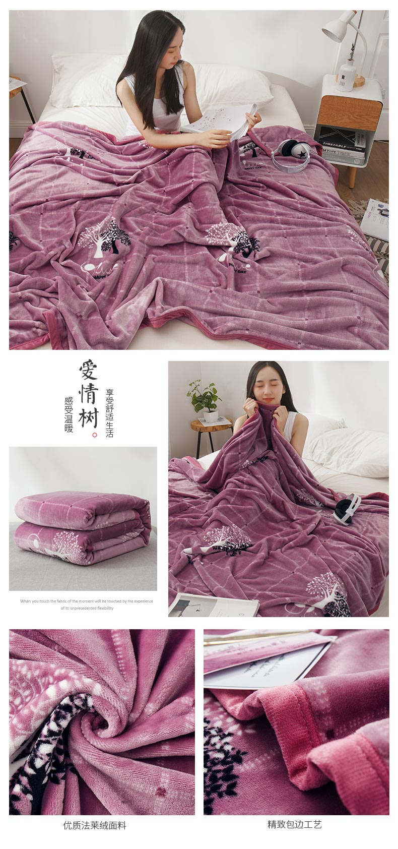 商品名称:兰花情 冬季宿舍学生法兰绒毯子珊瑚绒毛毯加厚被子