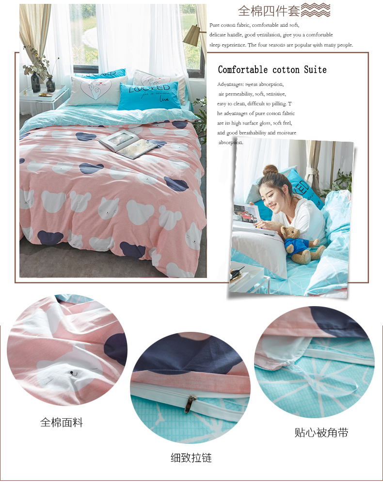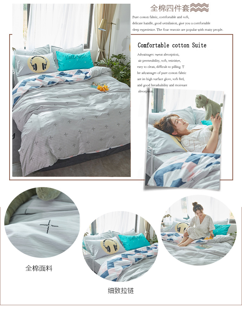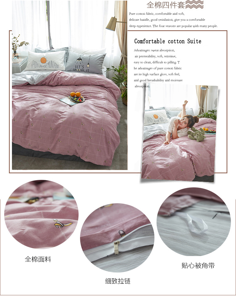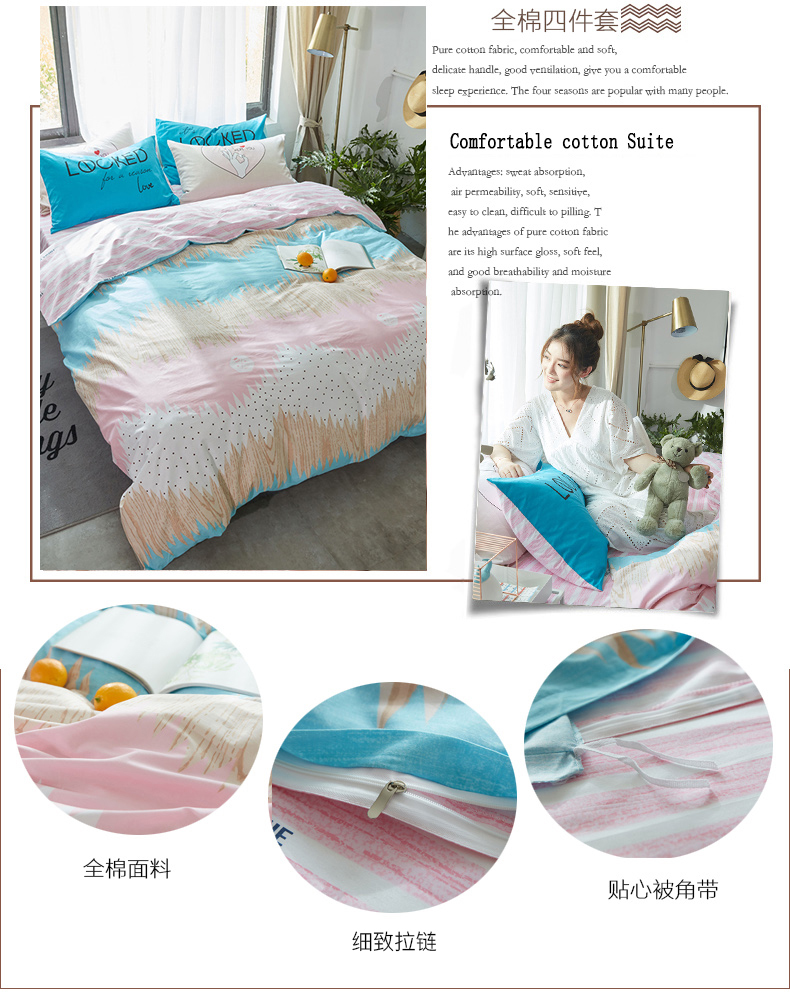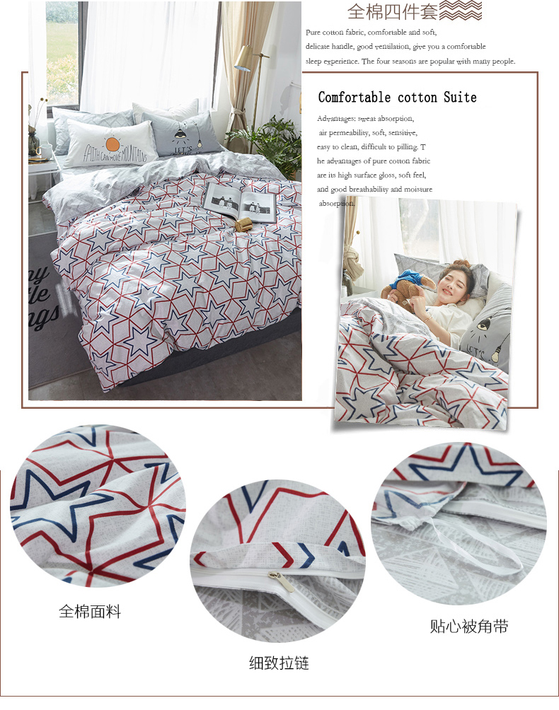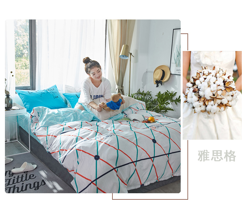 国产 全棉四件套纯棉1.8m床单1.5米被套单人简约