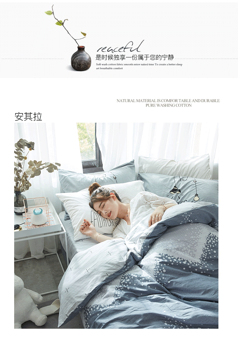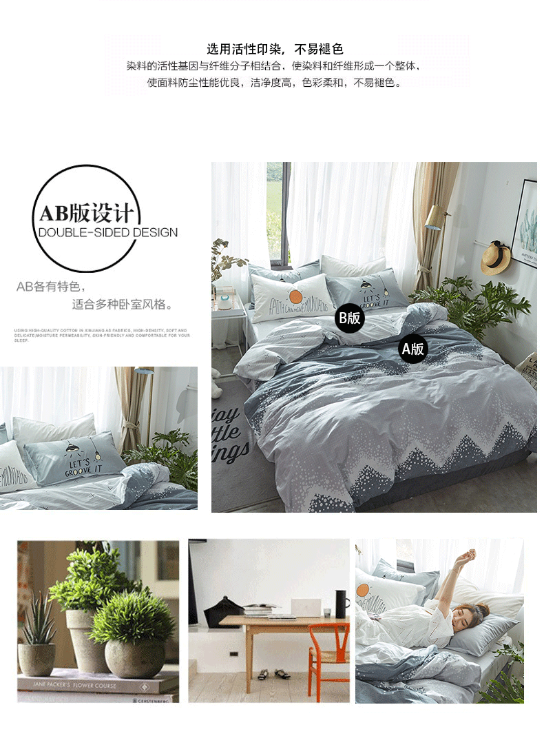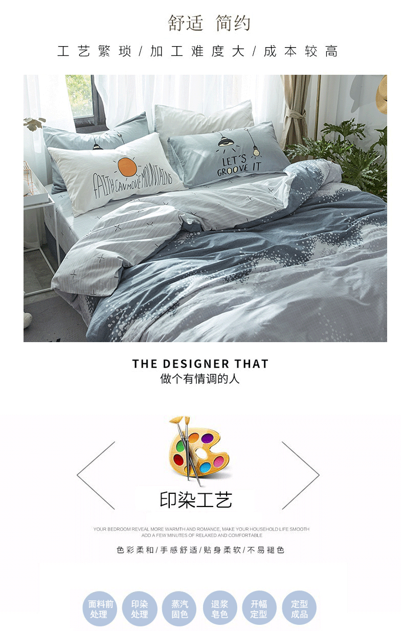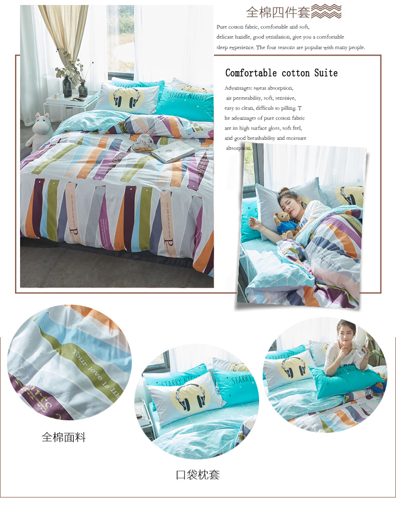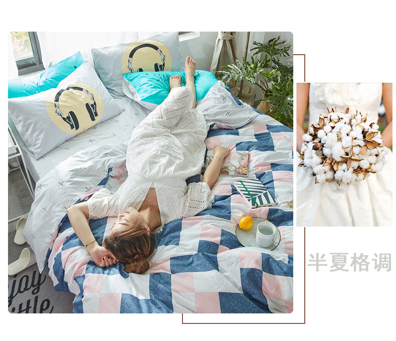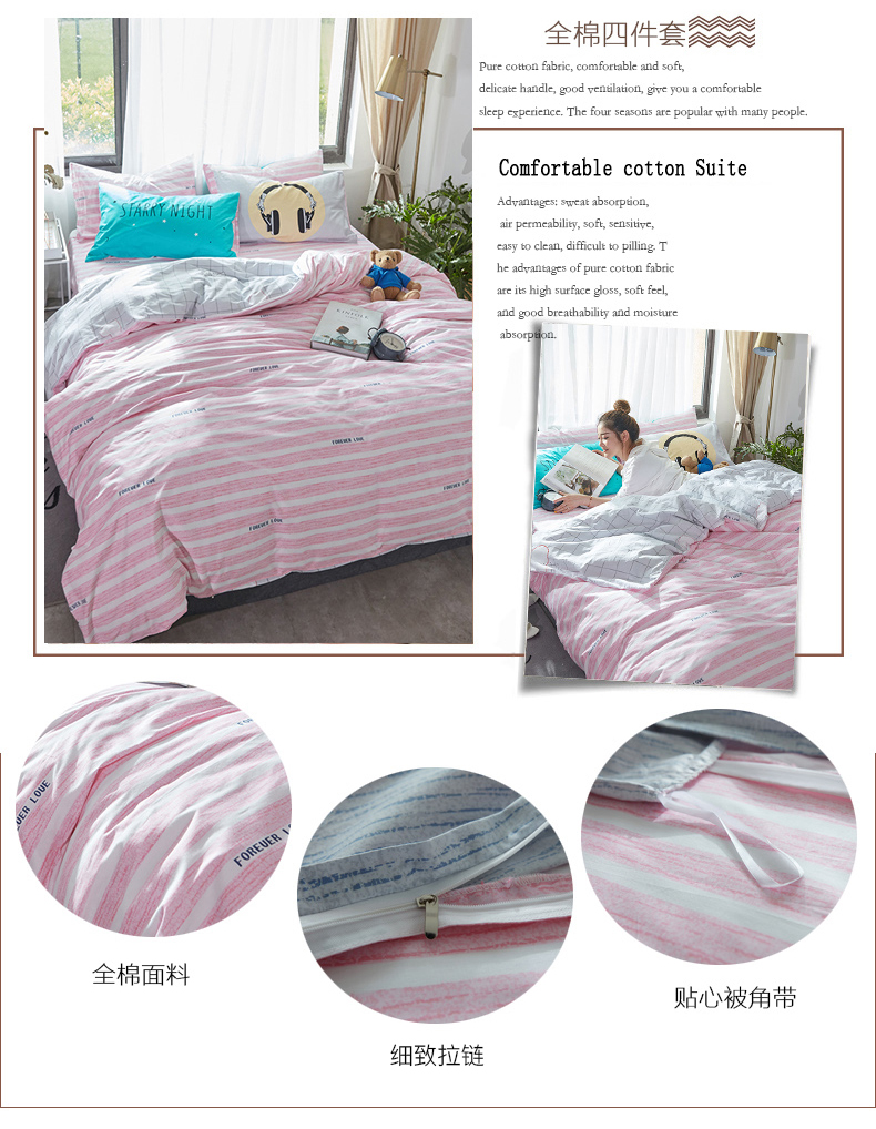 国产 全棉四件套纯棉1.8m床单1.5米被套单人简约