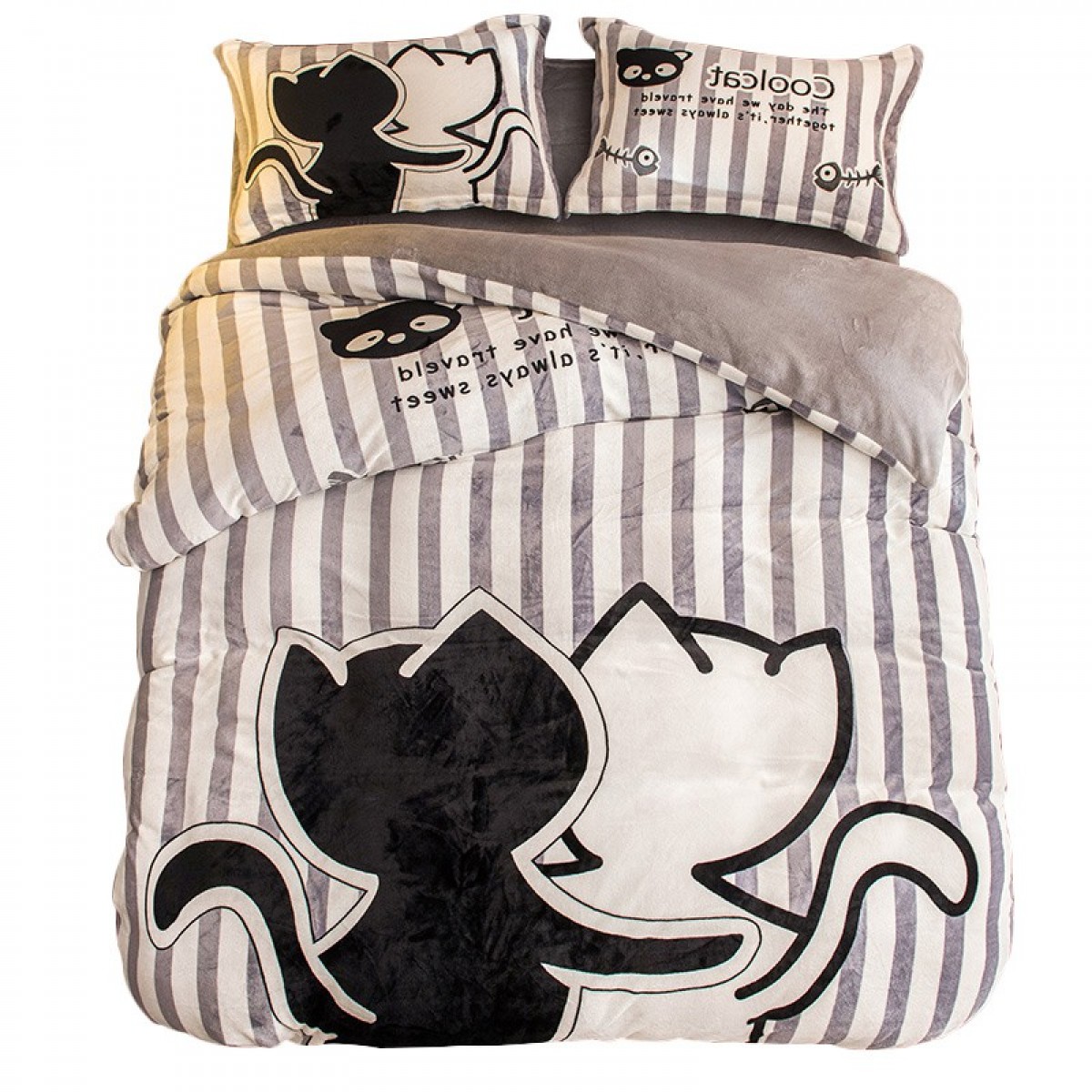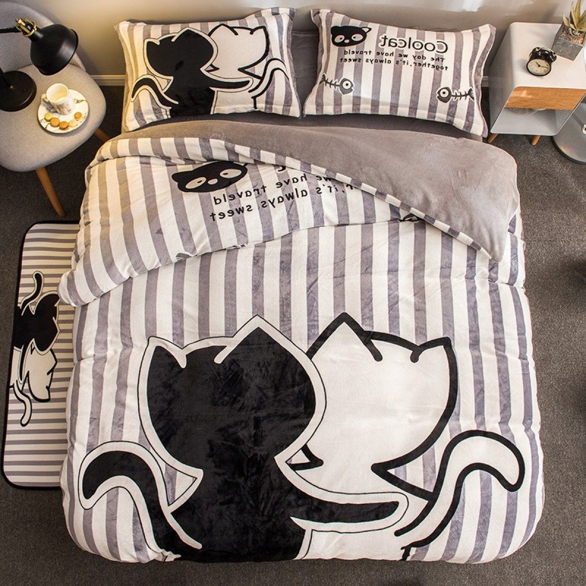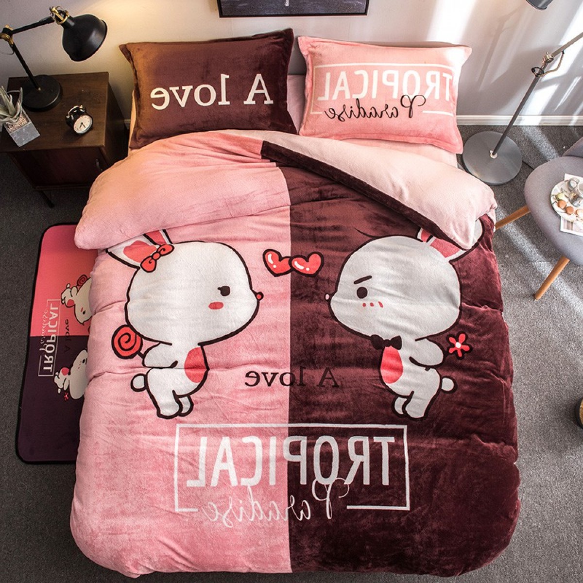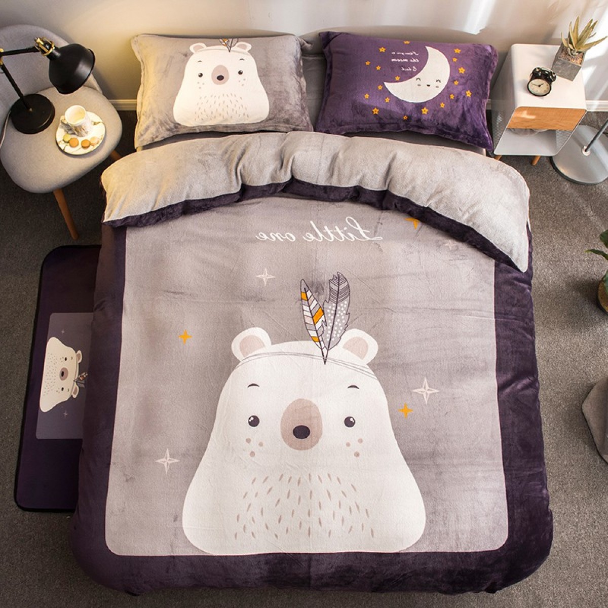 国产 卡通法兰绒四件套加厚保暖珊瑚绒被套单人