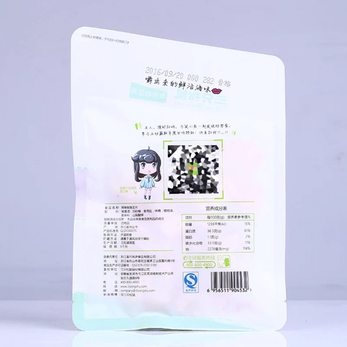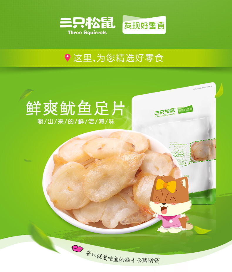 商品名称:三只松鼠 鱿鱼足片88gX3袋 即食鱿鱼须片海味鱼干零食鱿鱼片