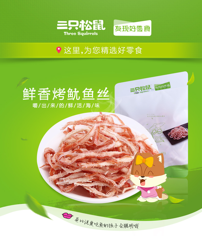 商品名称:三只松鼠 鲜香烤鱿鱼丝88g海鲜零食原味手撕即食鱿鱼条鱿鱼片黄鱼