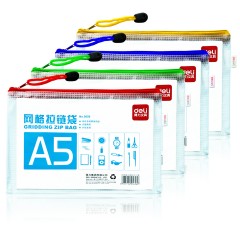 得力 拉链袋5656文件袋透明塑料网格袋A5大小拉边袋资料袋