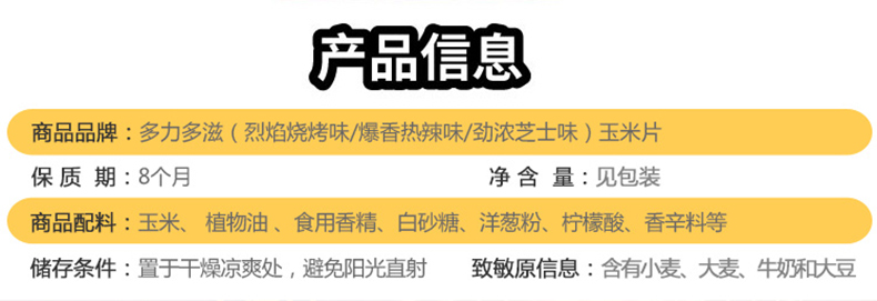 商品名称:多力多滋 玉米片 劲浓芝士味68g杂粮Doritos油炸型膨化薯片零食