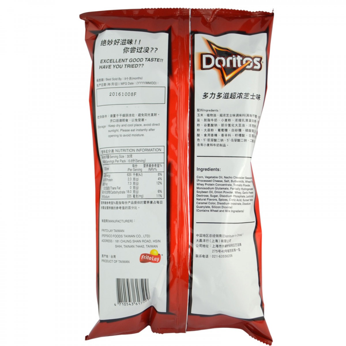 台湾进口零食多力多滋doritos玉米片薯片198.4gX3休闲膨化食品