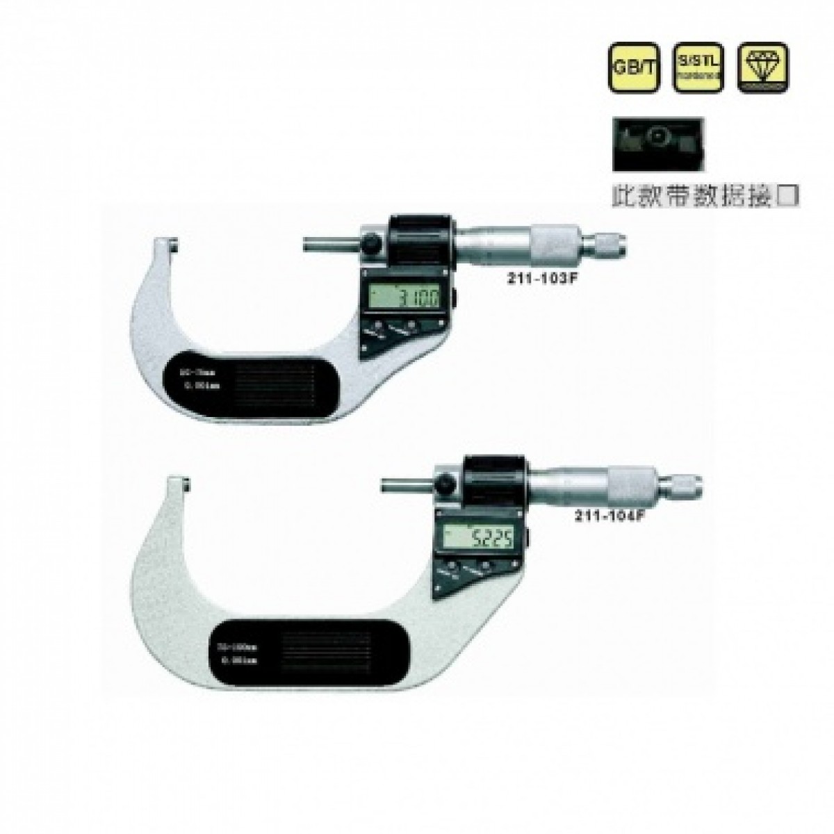 数显外径千分尺功能:自动断电功能、测量单位转换、置零、数据保持、数据预置,设置公差范围。