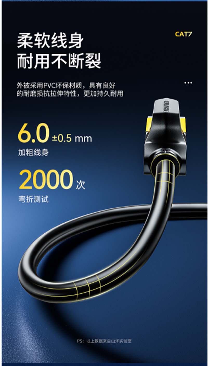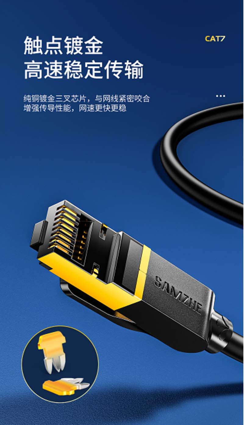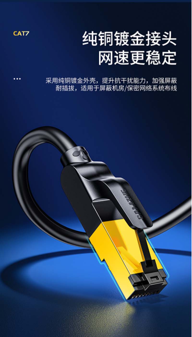 商品名称:☆山泽 SAMZHE CAT-7005H 工程级七类CAT7类纯铜镀金双屏蔽超高速网络跳线 成品网线 黑色0.5米