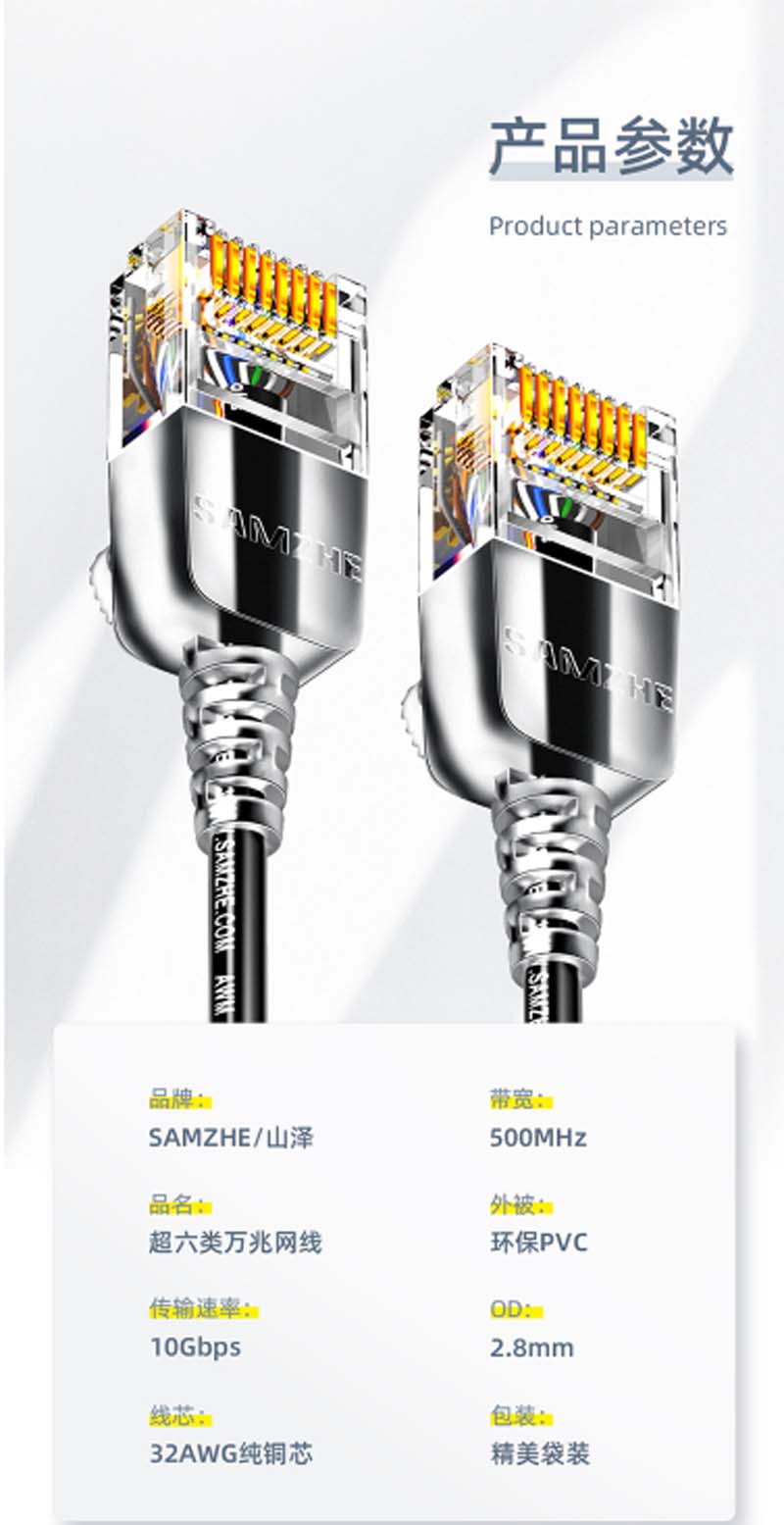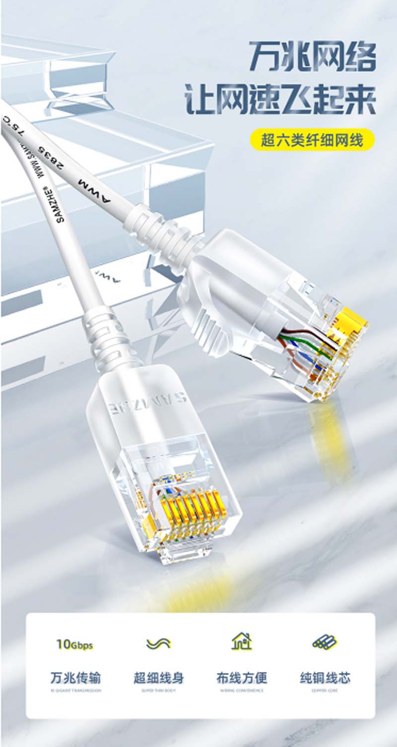 商品名称:☆山泽 SAMZHE SZB-3050 超六类网线 5米 白色