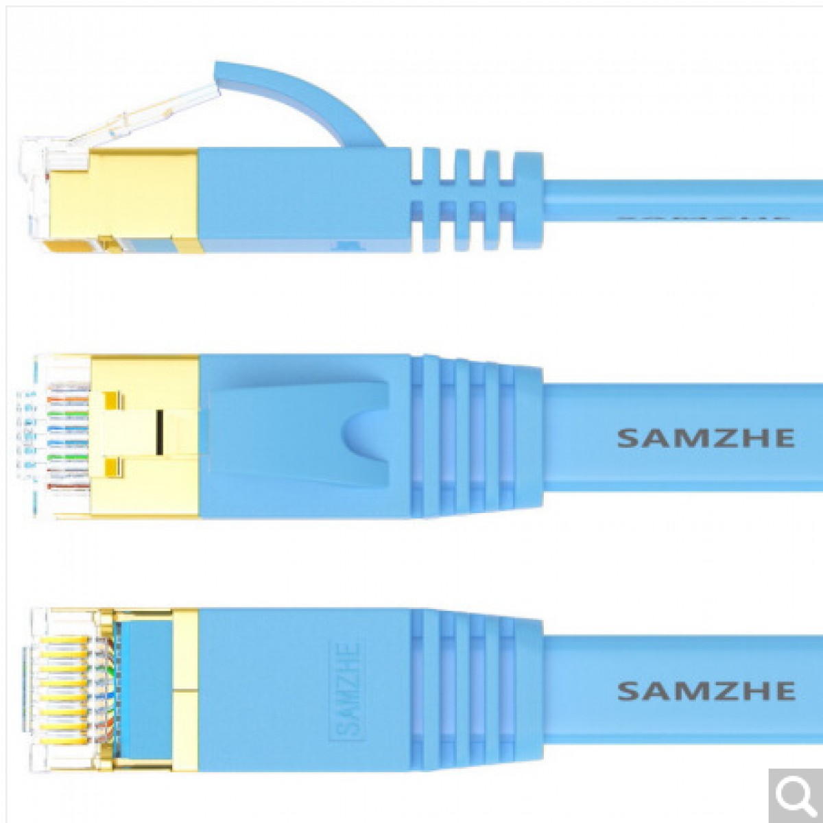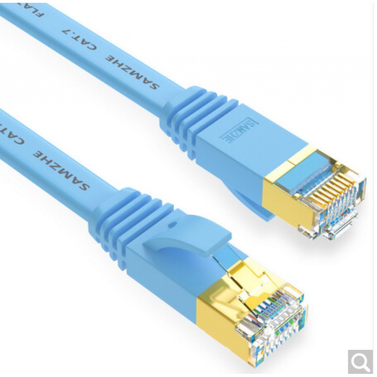 山泽(SAMZHE)CAT-708B 七类CAT7类扁平网线 镀金屏蔽双绞网络连接线 电脑网络跳线 7类成品网线 蓝色 8米