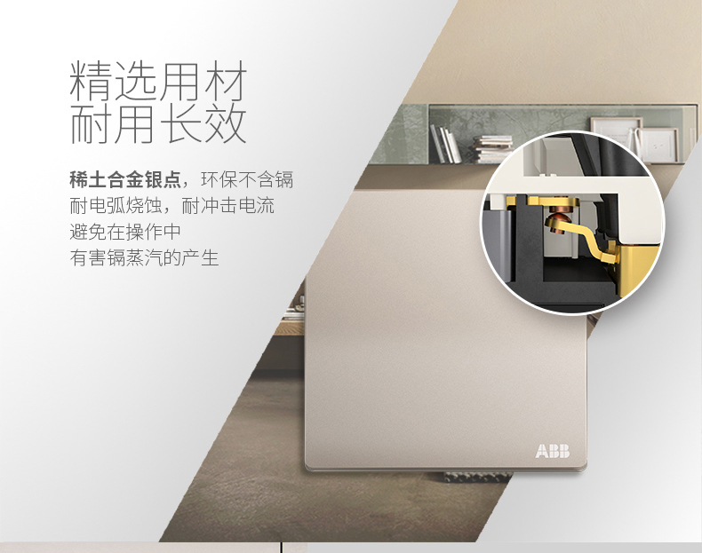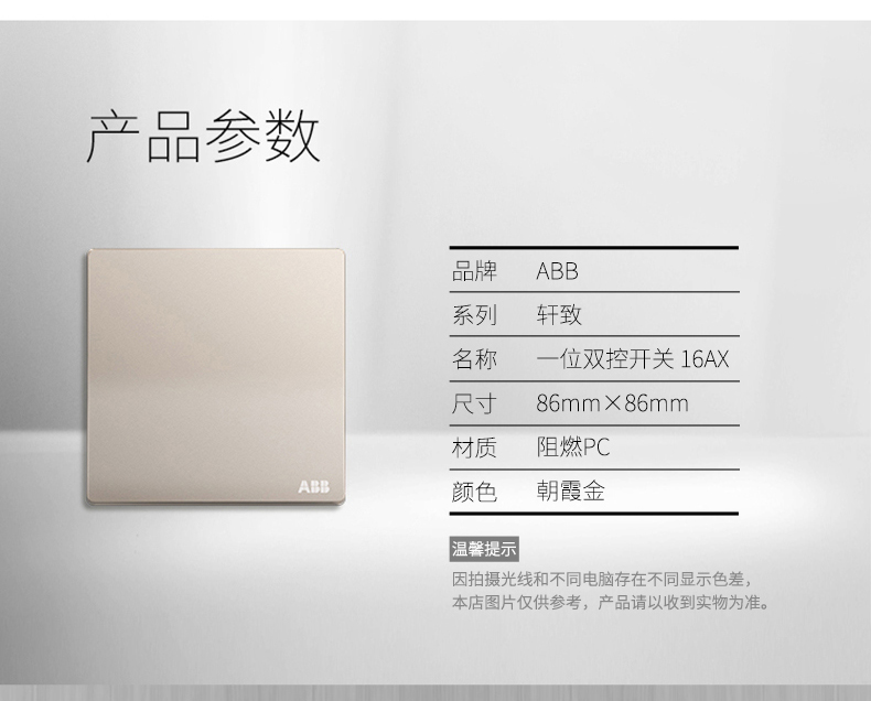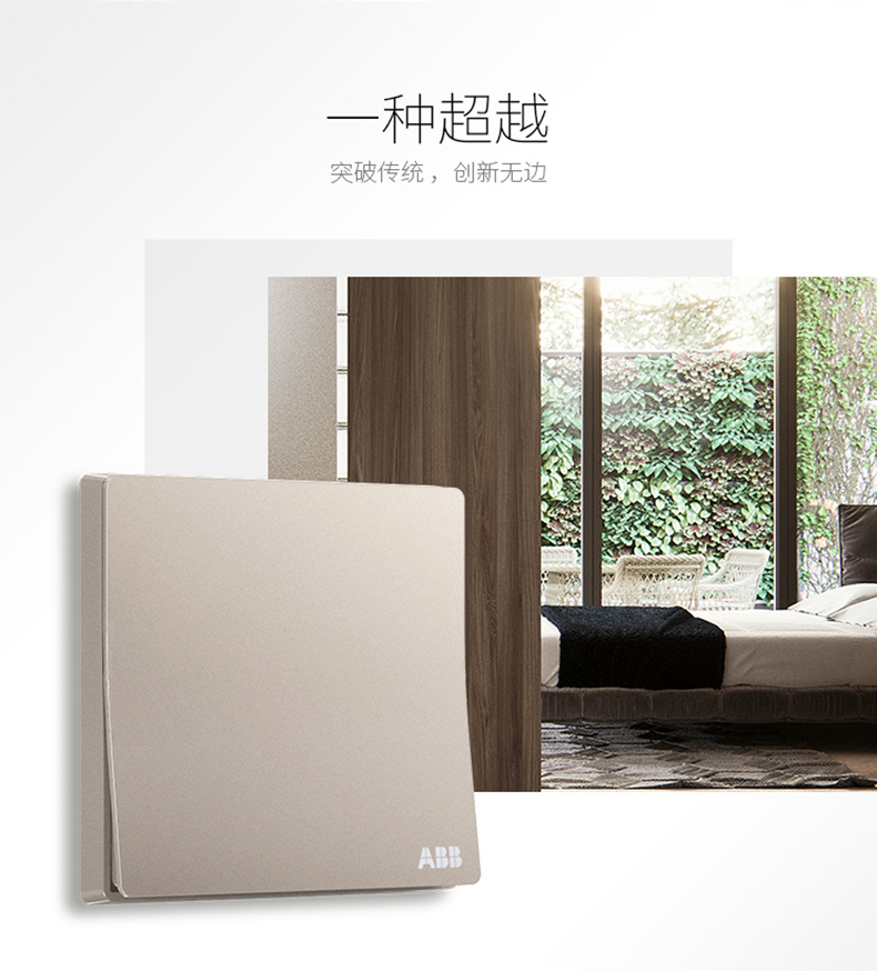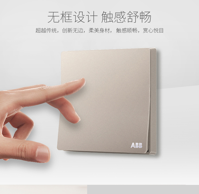 商品名称:ABB 开关插座无框轩致朝霞金墙壁开关面板一开双控开关AF125-PG