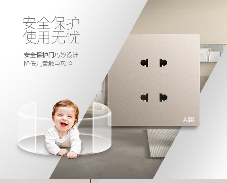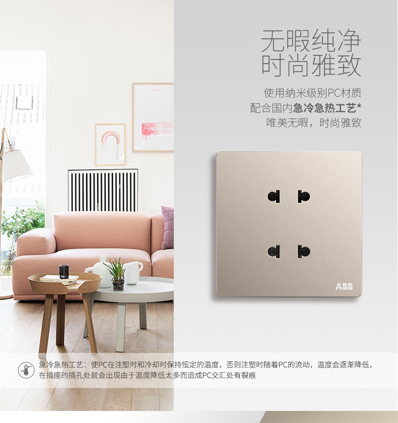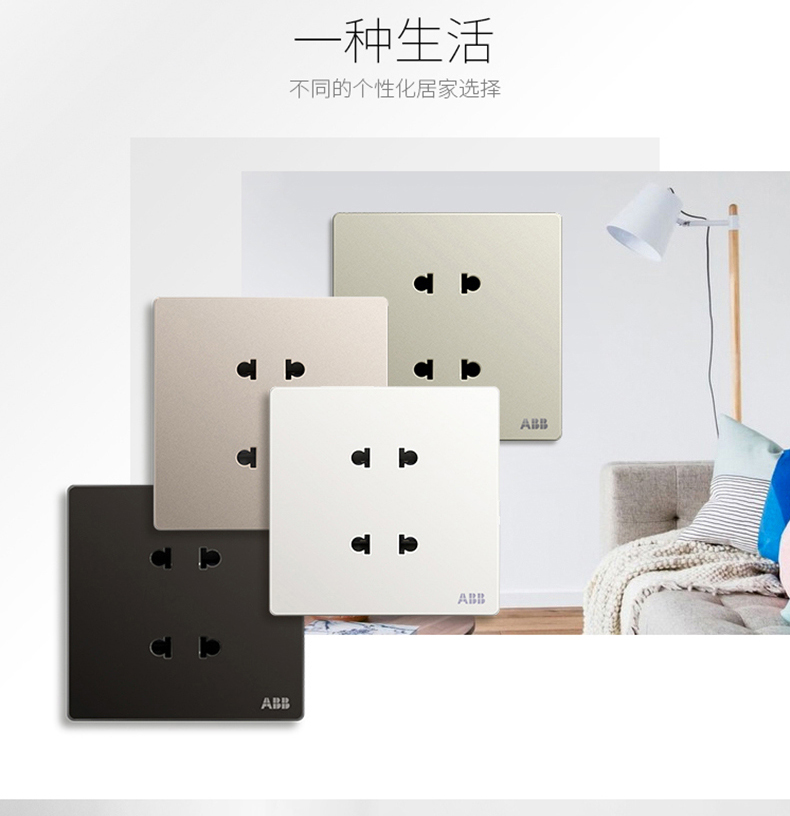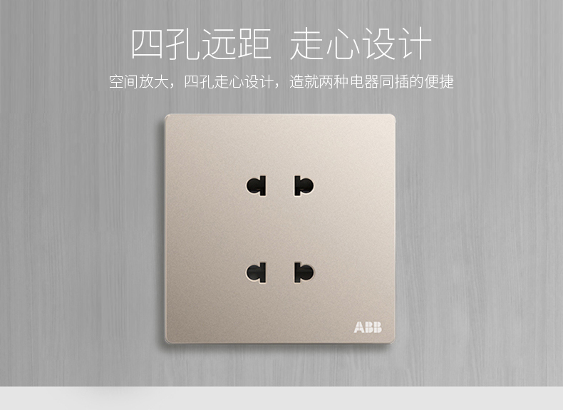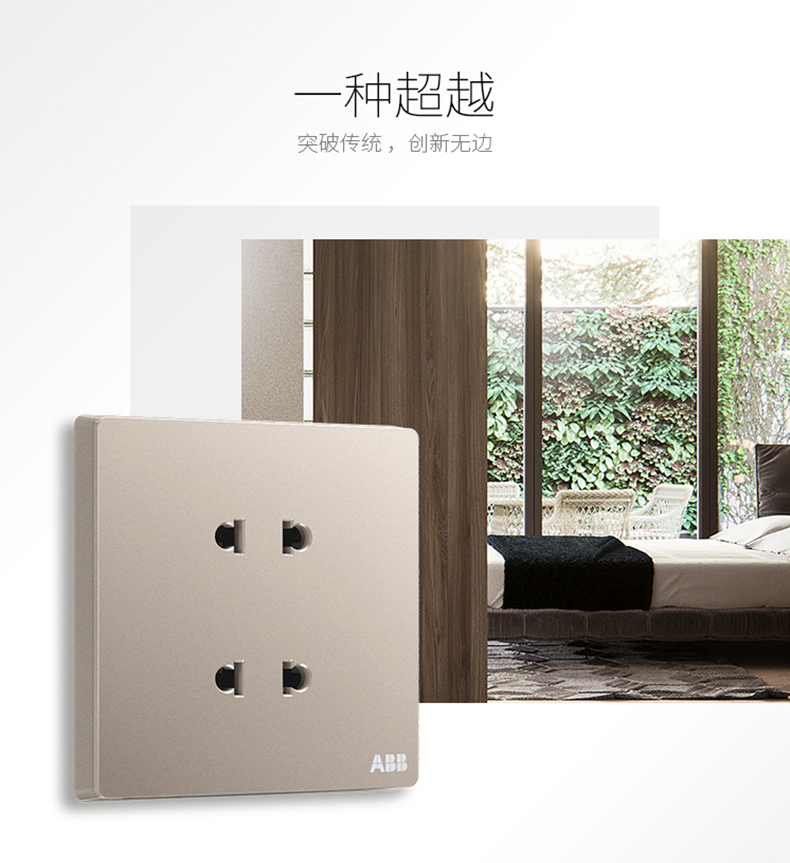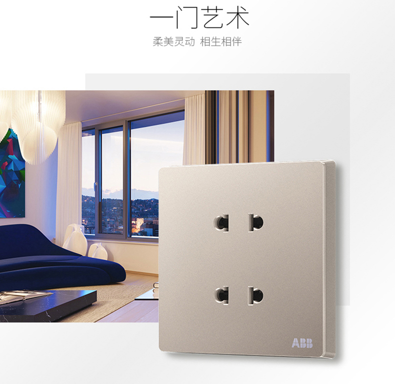 ABB 开关插座无框轩致朝霞金墙壁插座面板四孔插座AF212-PG
