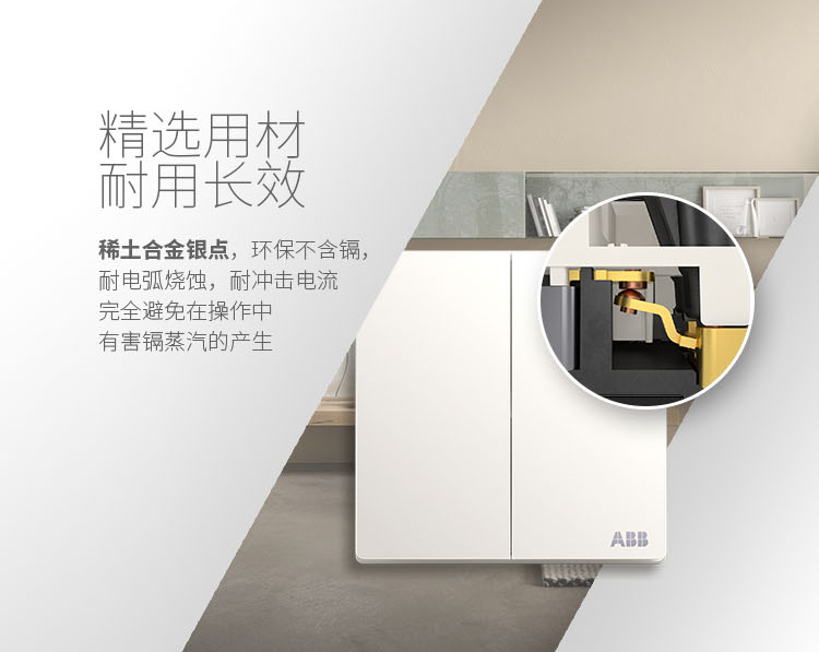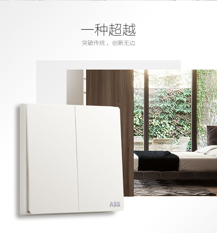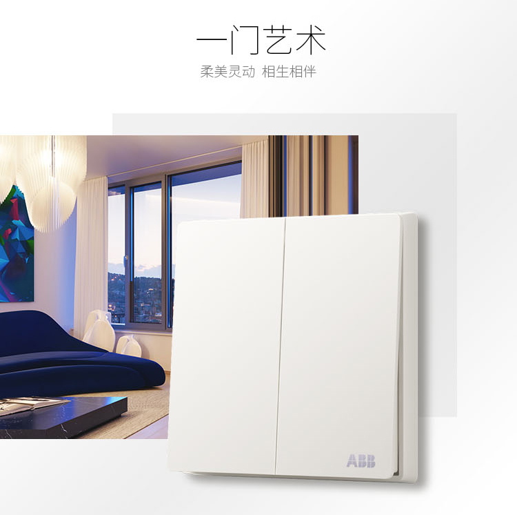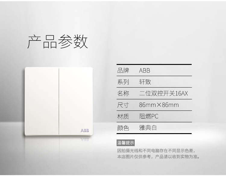 商品名称:ABB 纯平直边开关插座轩致雅典白色 二位二开双控开关面板AF126L