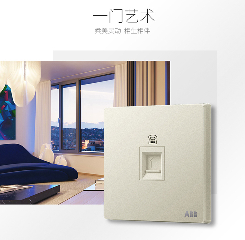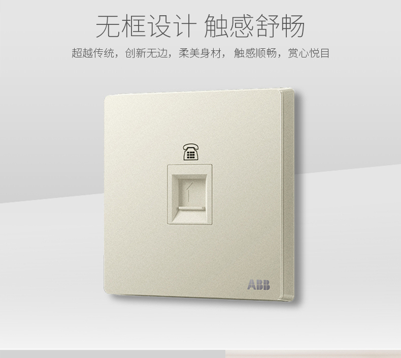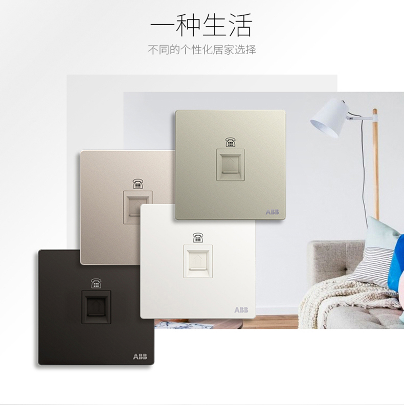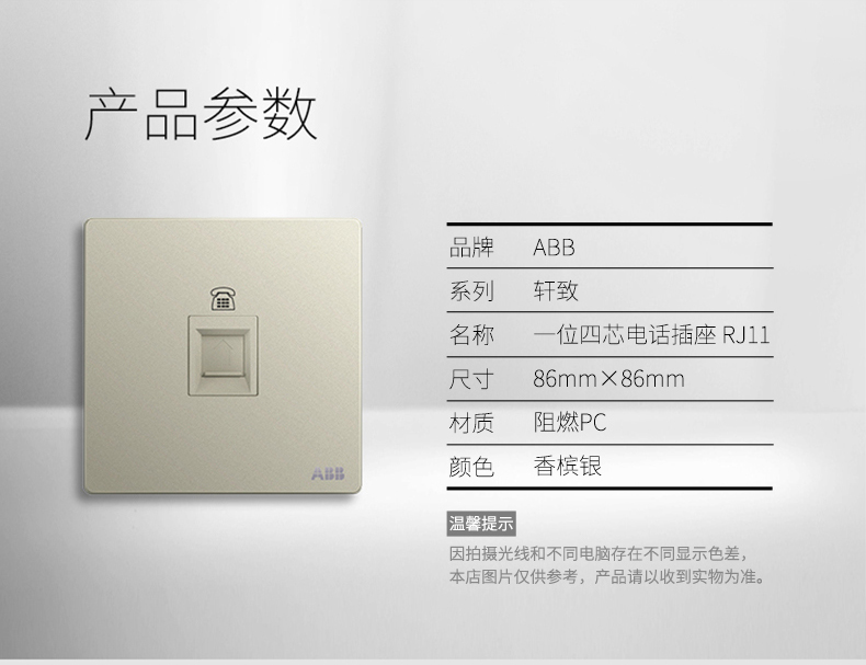 商品名称:ABB 开关插座面板86型家用单口一位电话插座轩致系列银色AF321-CS