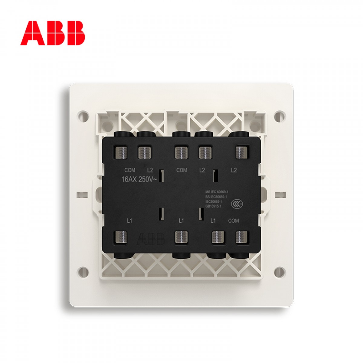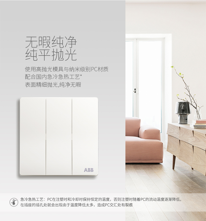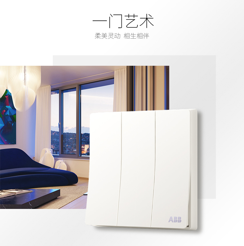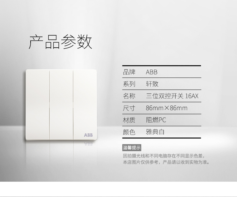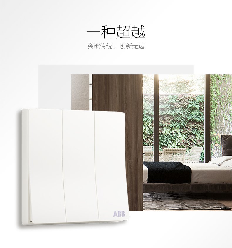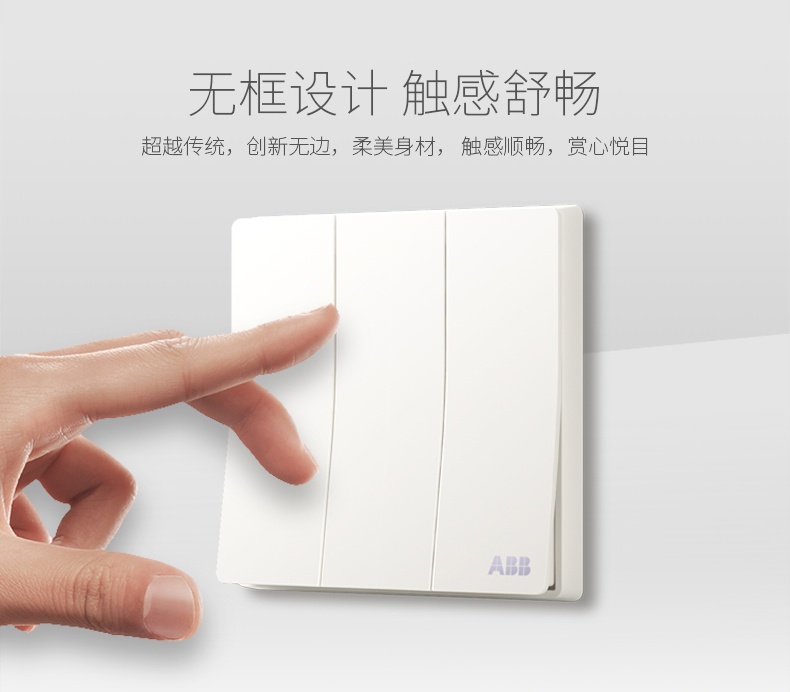 商品名称:ABB 开关插座面板三开双控16A 轩致无框雅典白色系列三位双控AF121