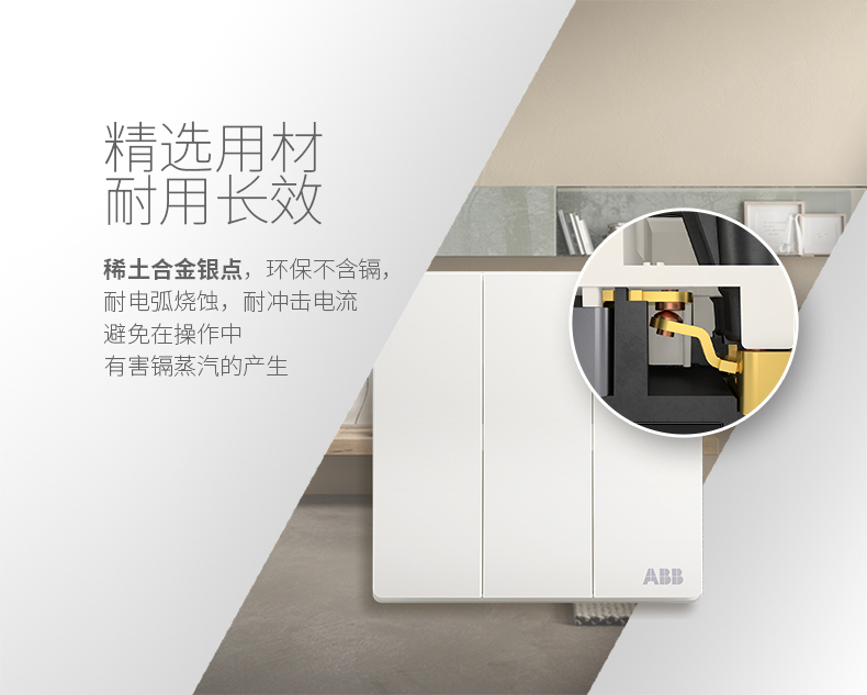 ABB 开关插座面板三开双控16A 轩致无框雅典白色系列三位双控AF121