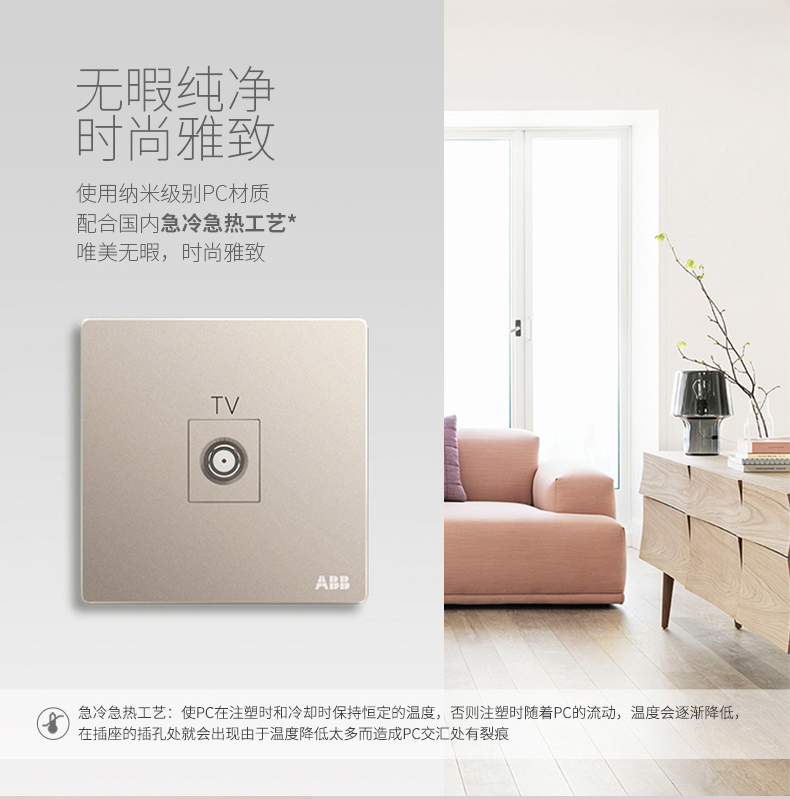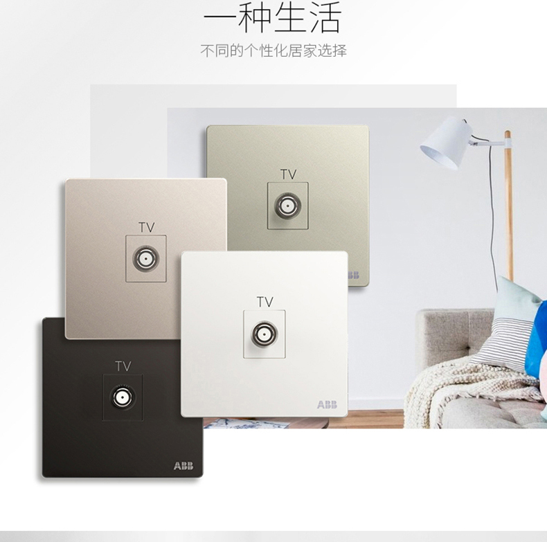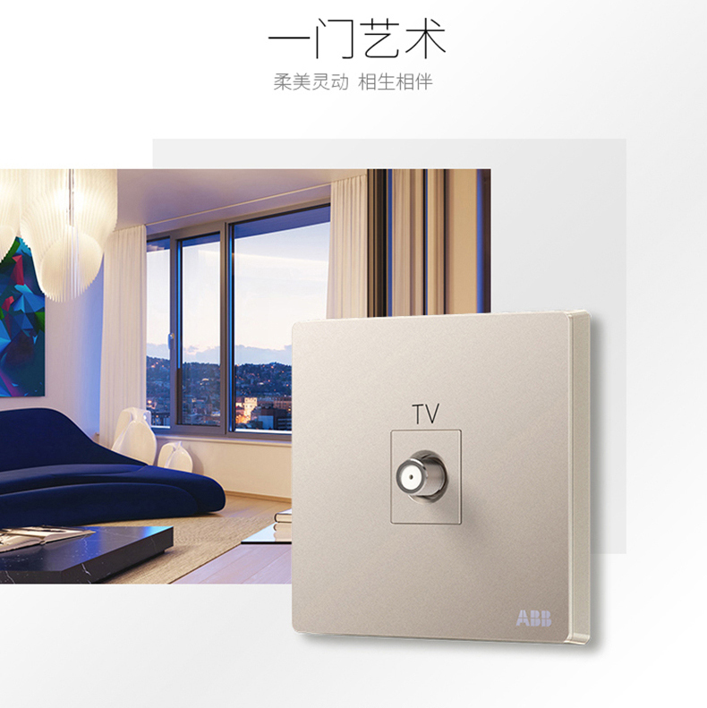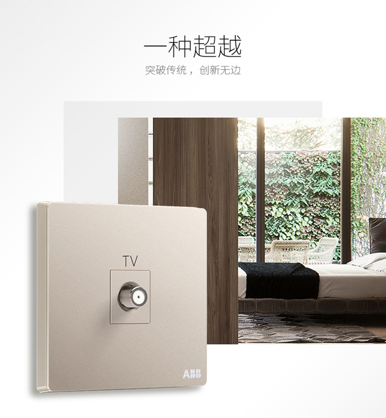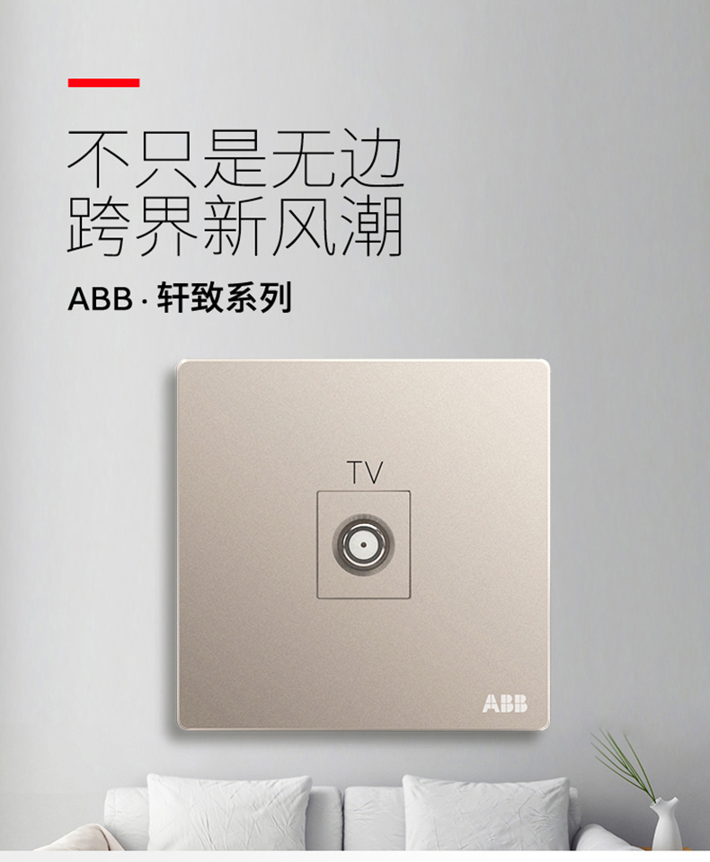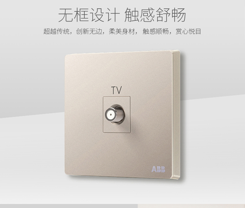 ABB 开关插座无框轩致朝霞金墙壁插座面板宽频电视插座AF303-PG