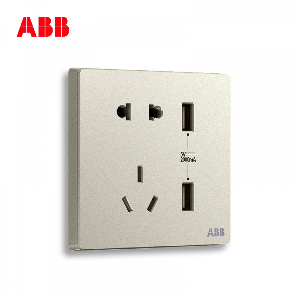 ABB 开关插座无框轩致香槟银插座面板双USB五孔插座AF293-CS