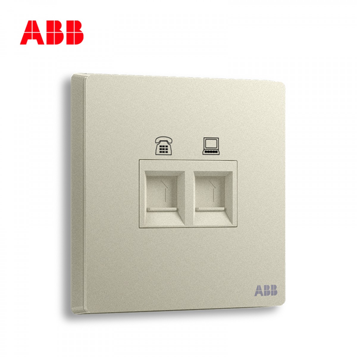 ABB 开关插座轩致无框 香槟银 二位电话/六类电脑网络插座AF330-CS