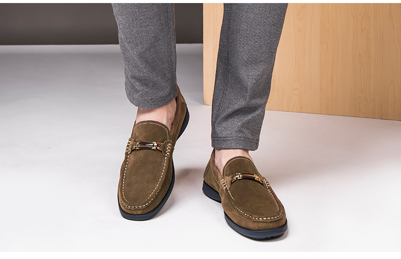 红蜻蜓 豆豆鞋男春季新款真皮懒人鞋 套脚休闲皮鞋