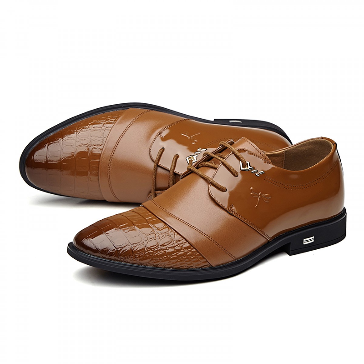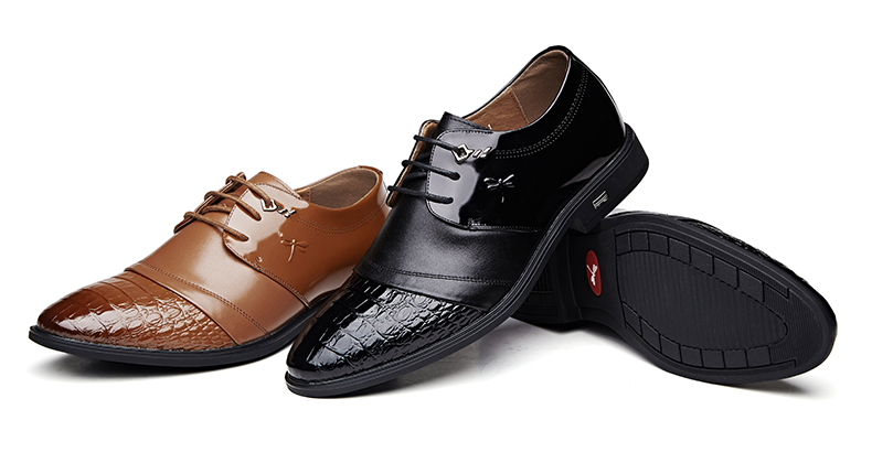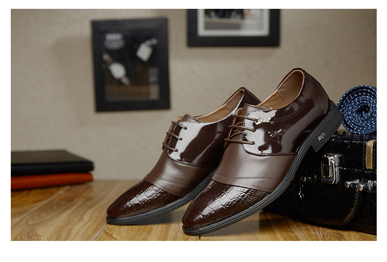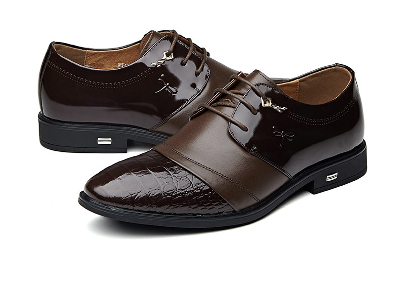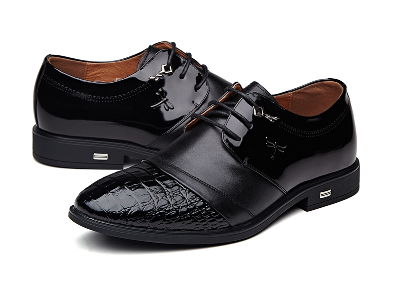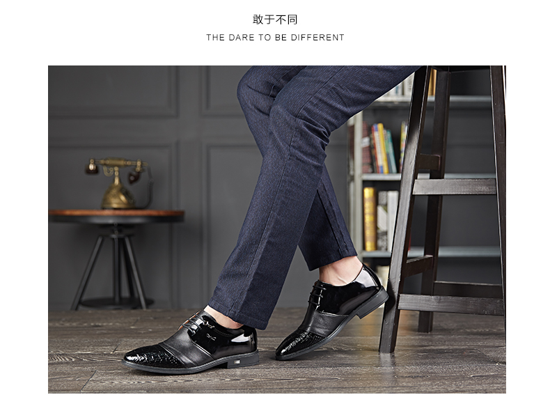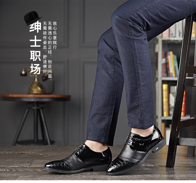 红蜻蜓 真皮鞋春季新款正装商务职场办公室漆皮亮皮男鞋