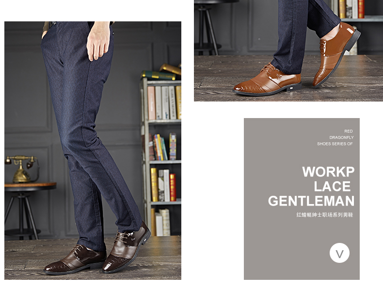 商品名称:红蜻蜓 真皮鞋春季新款正装商务职场办公室漆皮亮皮男鞋