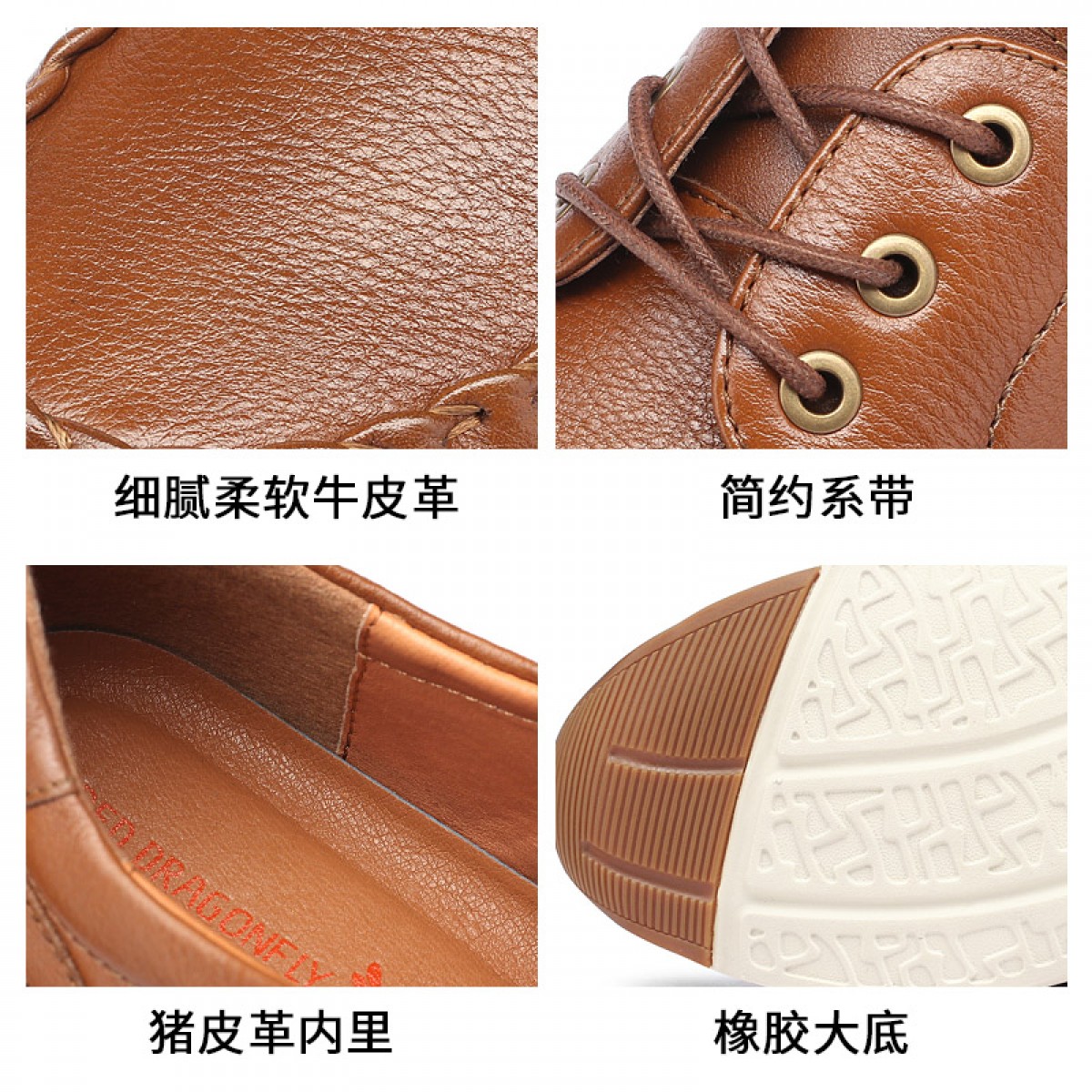 商品名称:红蜻蜓 男鞋秋季新款舒适真皮休闲鞋子系带时尚复古风皮鞋
